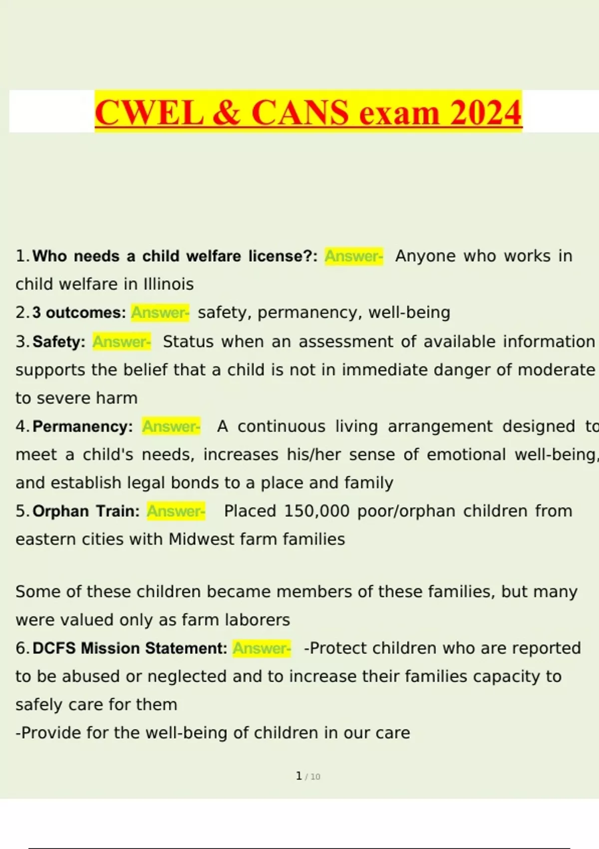 6. DCFS Mission Statement: Answer- -Protect children who are reported