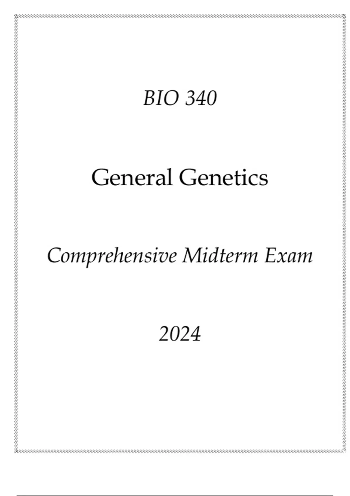(ASU Online) BIO 340 General Genetics Comprehensive Midterm Exam 2024.(ASU Online) BIO 340 General Genetics Comprehensive Midterm Exam 2024.(ASU Online) BIO 340 General Genetics Comprehensive Midterm Exam 2024.