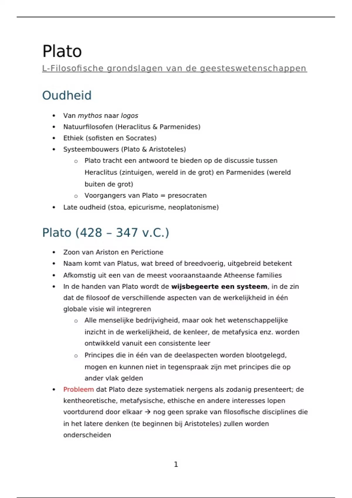  Probleem dat Plato deze systematiek nergens als zodanig presenteert; de