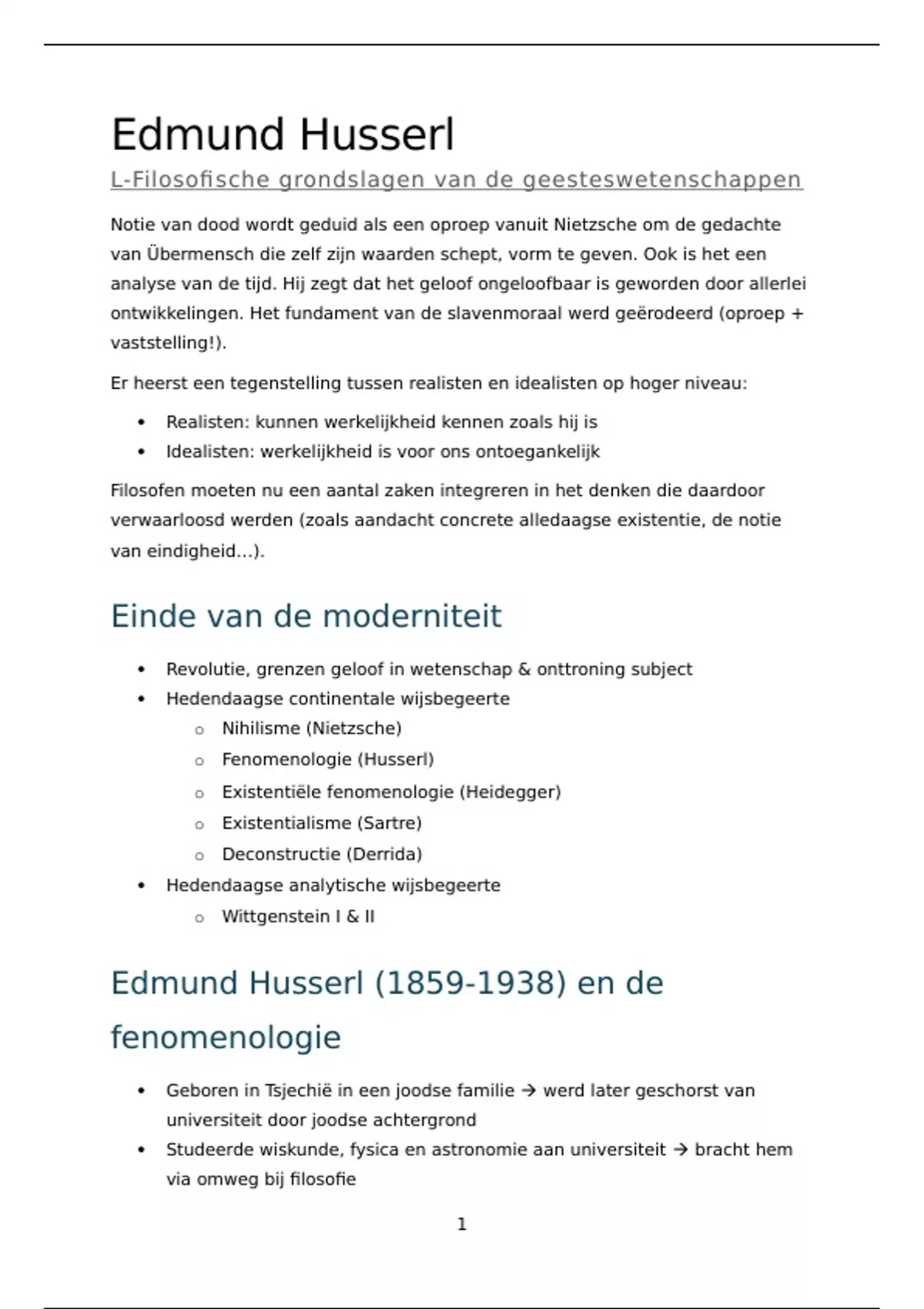 Dit document is een samenvatting van de voornaamste visies van Husserl.