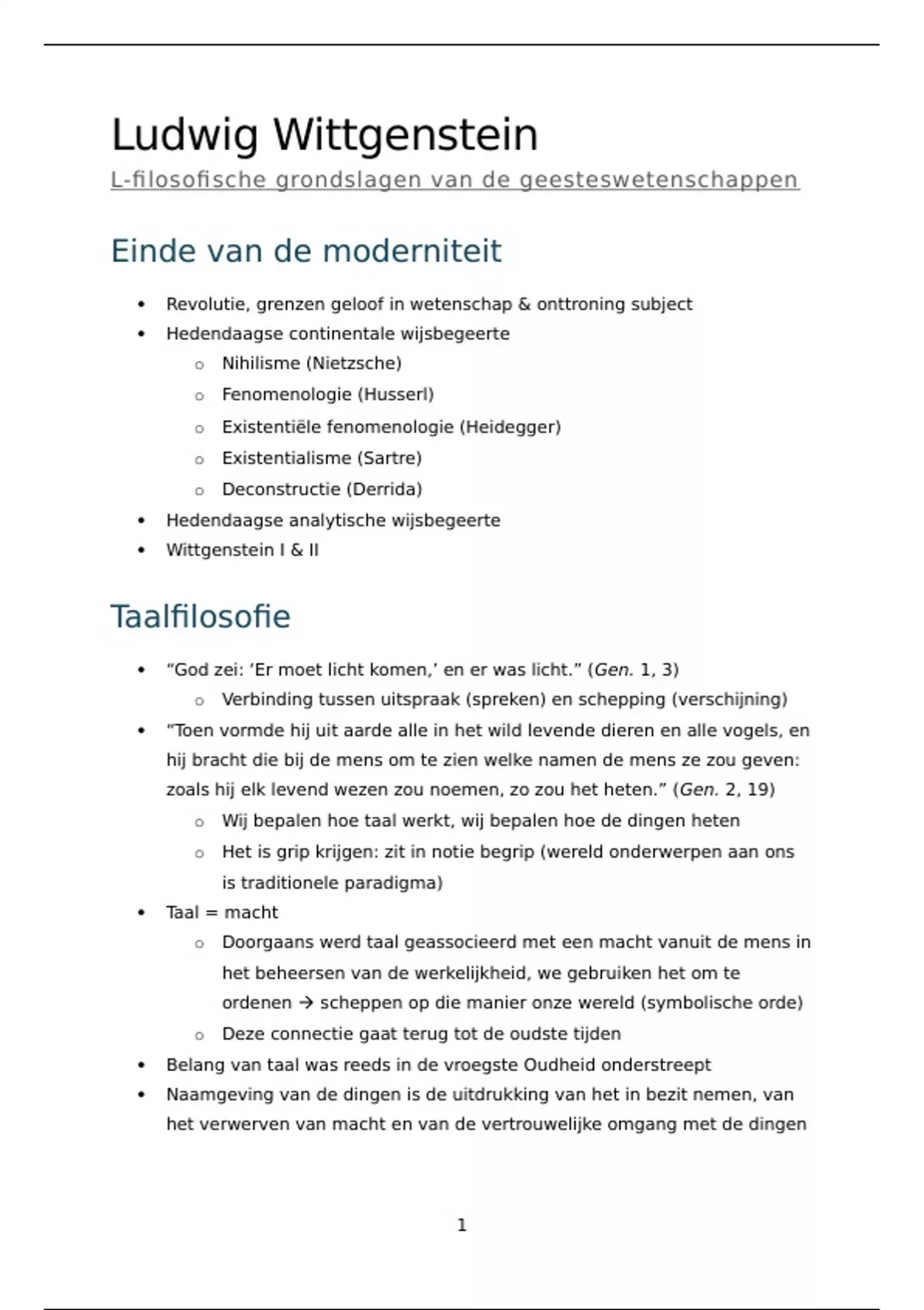 Dit document is een samenvatting van Wittgenstein 1 en Wittgenstein 2.