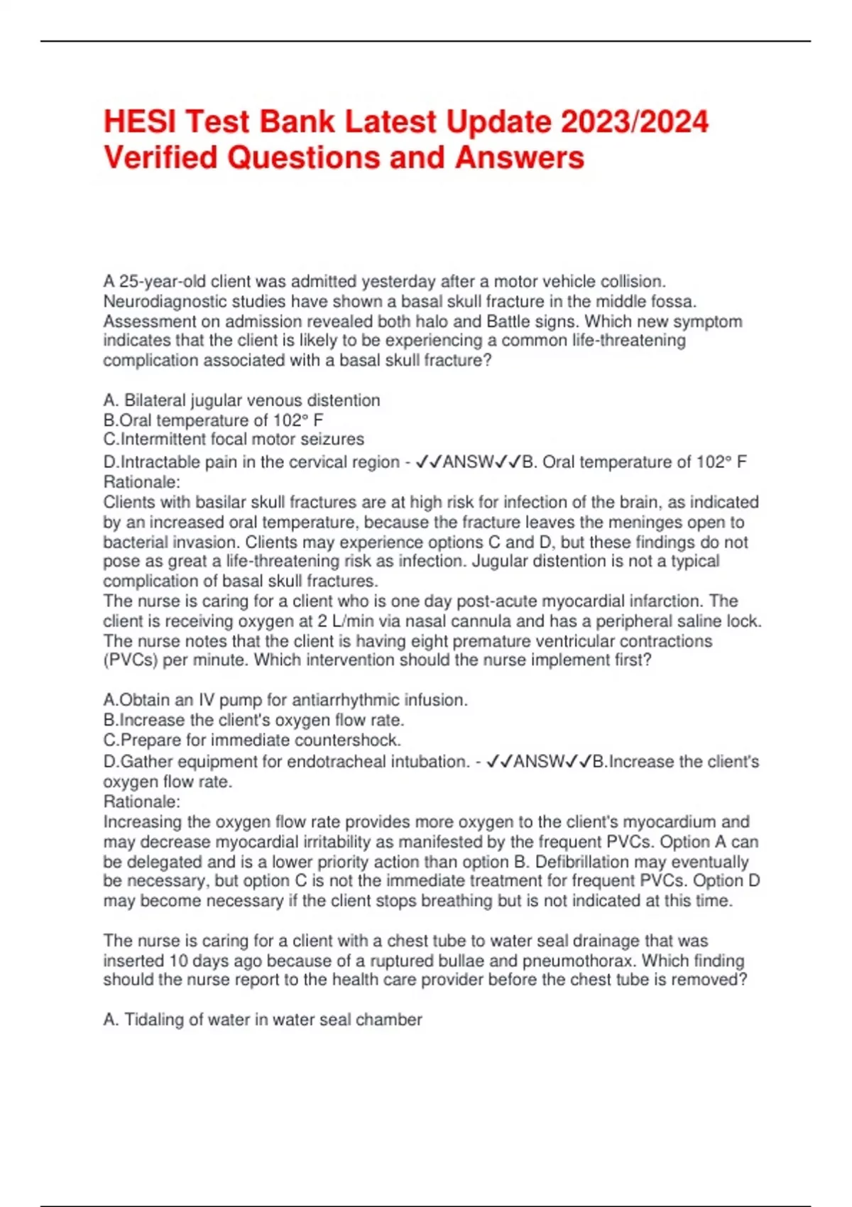 HESI Test Bank Latest Update 2023/2024 Verified Questions and Answers