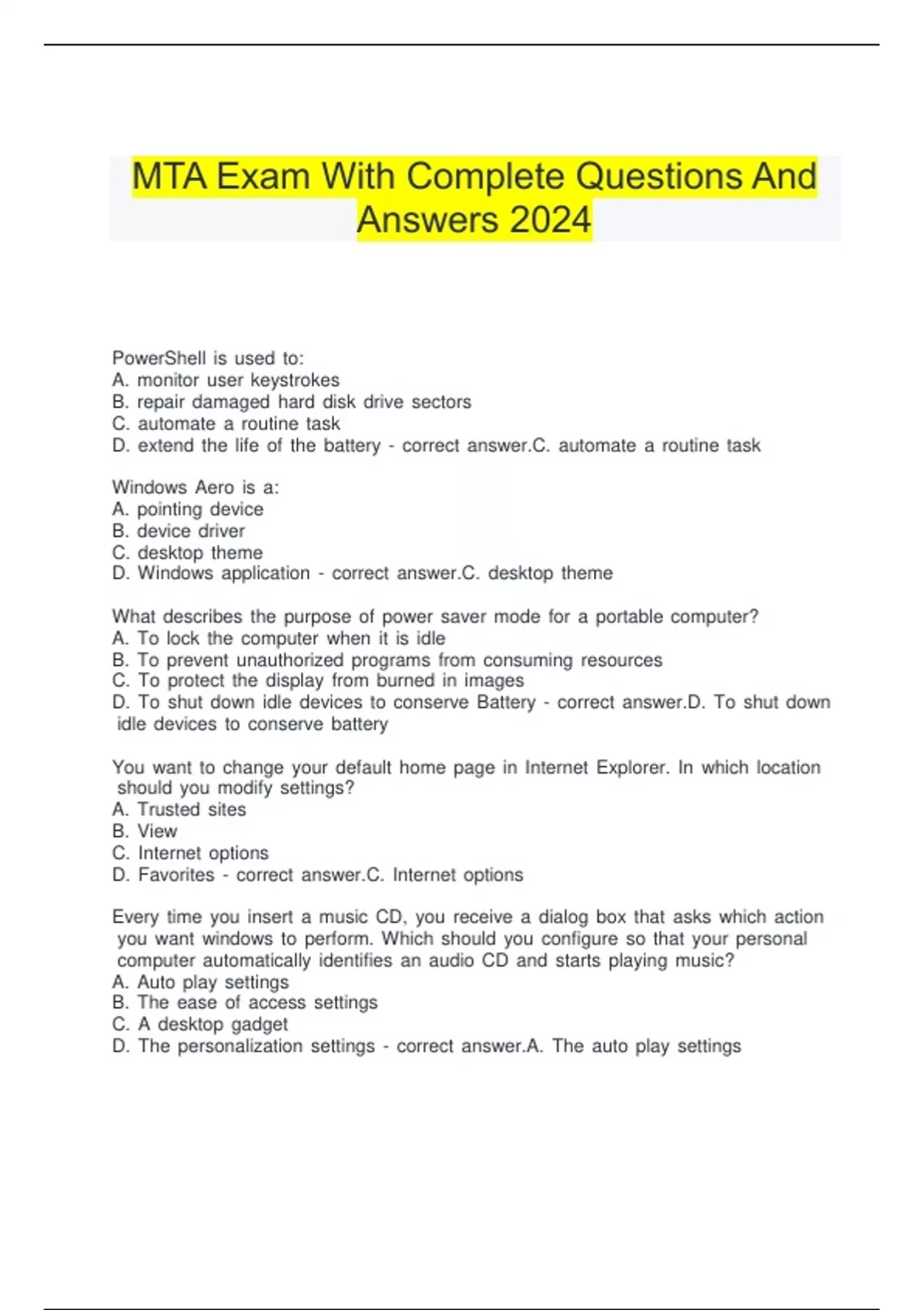 Package deal for MTA Exam Questions With Correct Answers 2024