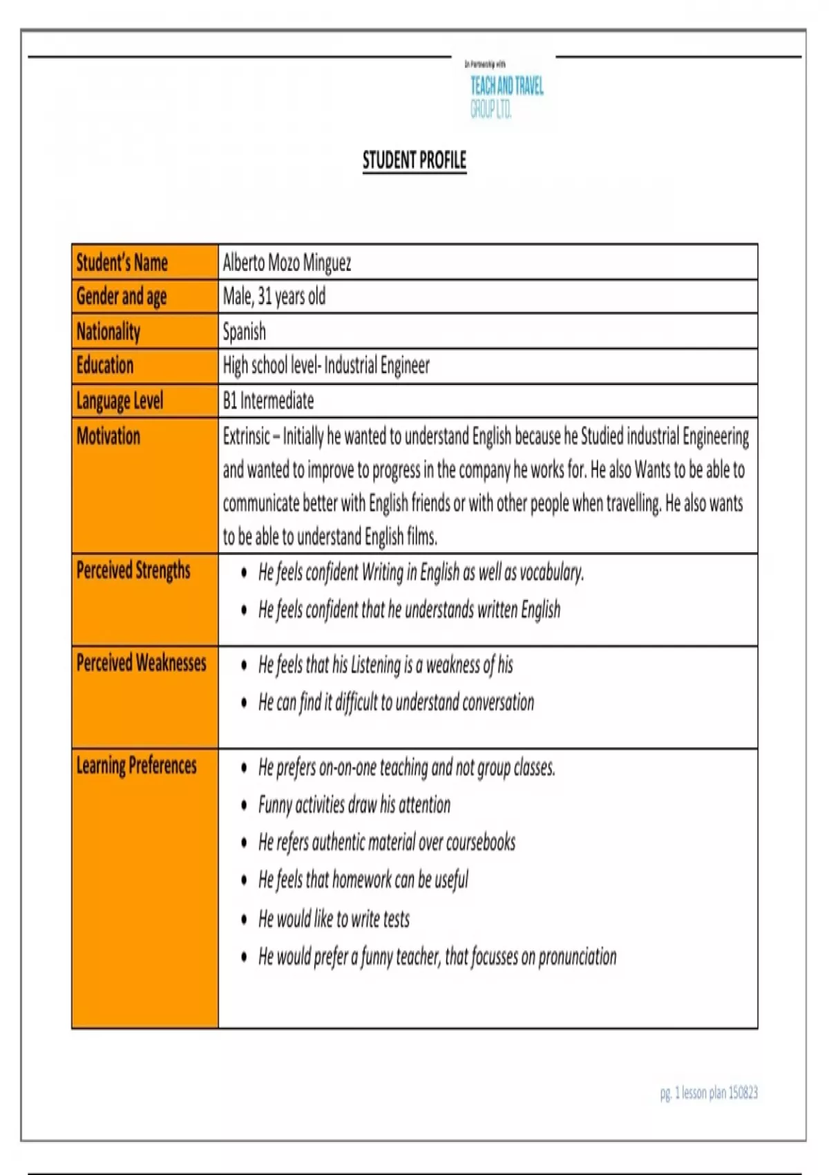 The purpose of developing this lesson plan was to offer Alberto a broad