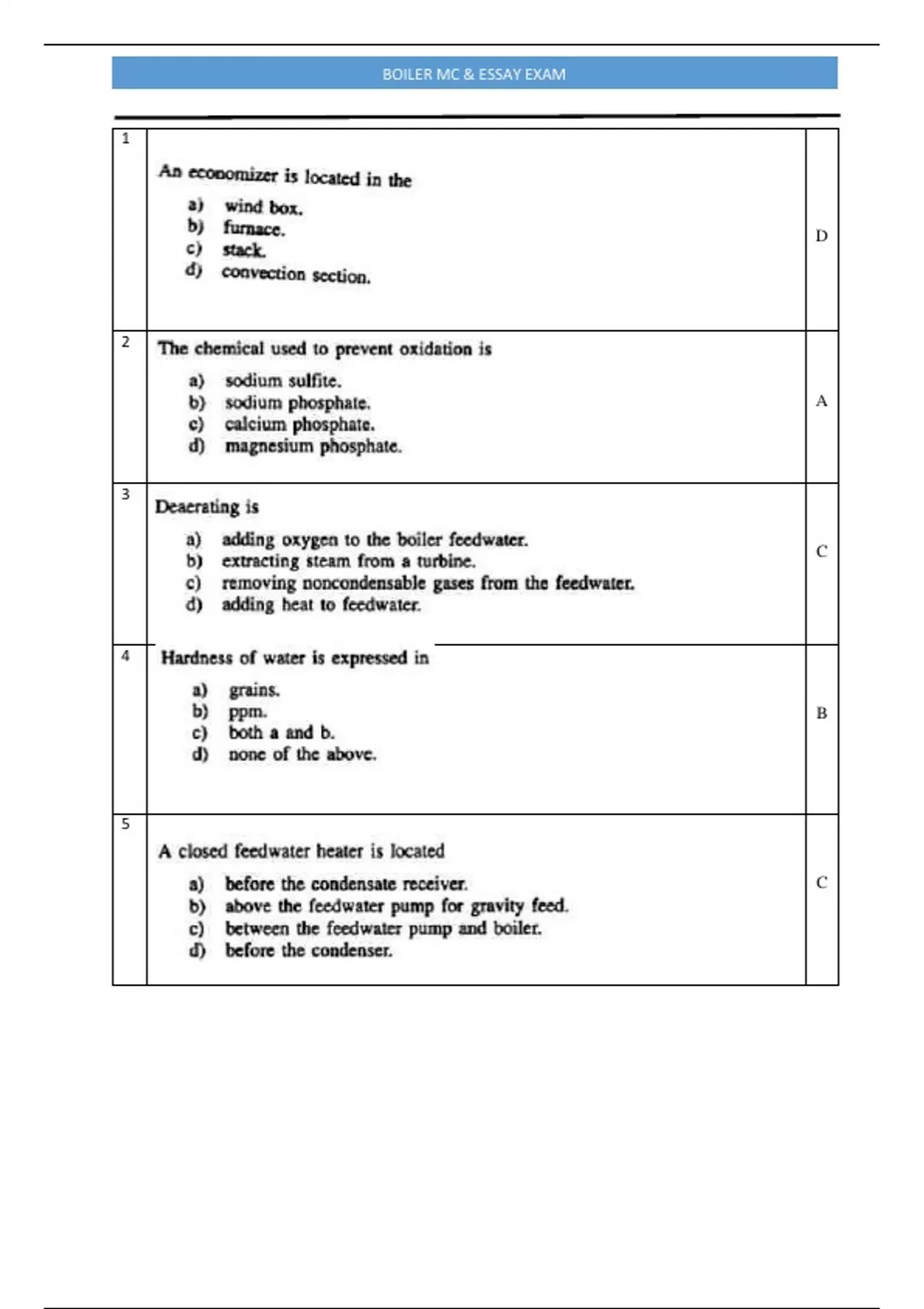 boiler mc essay exam