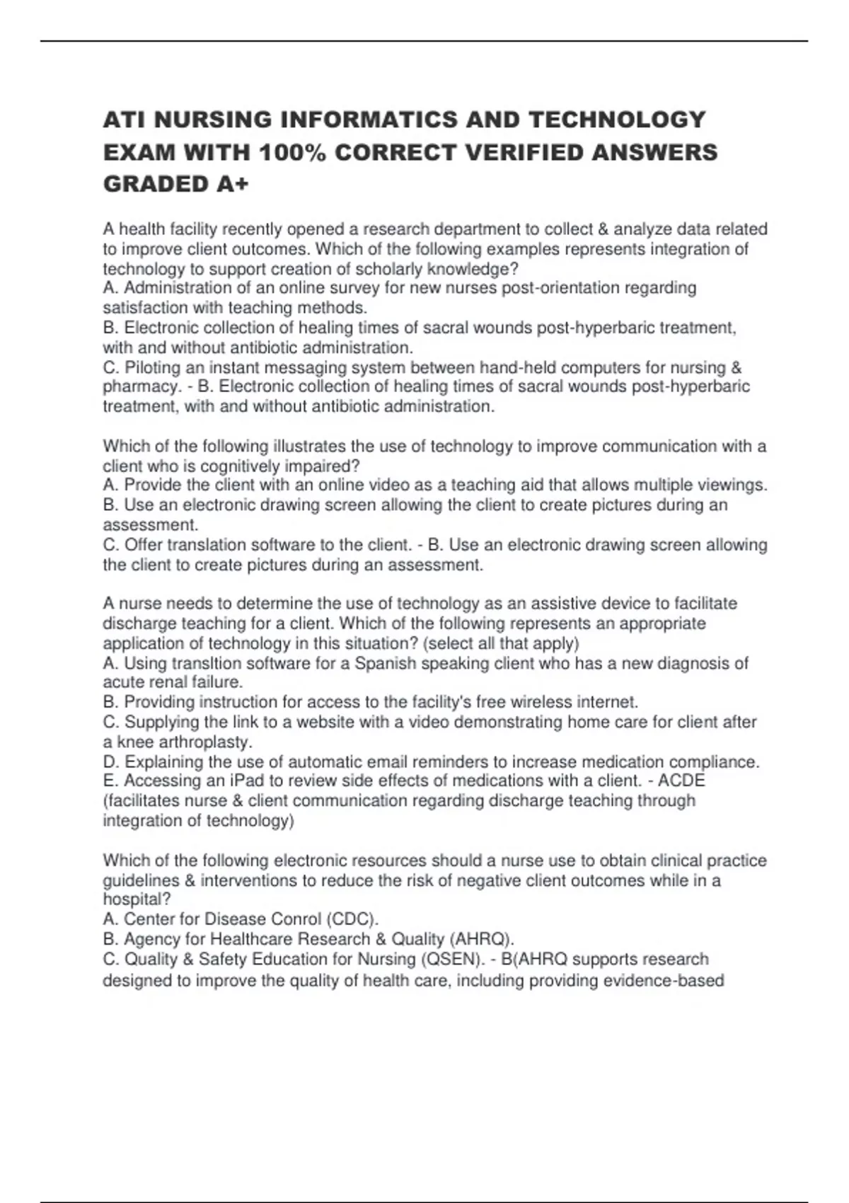 ATI NURSING INFORMATICS AND TECHNOLOGY EXAM WITH 100% CORRECT VERIFIED ANSWERS GRADED A+