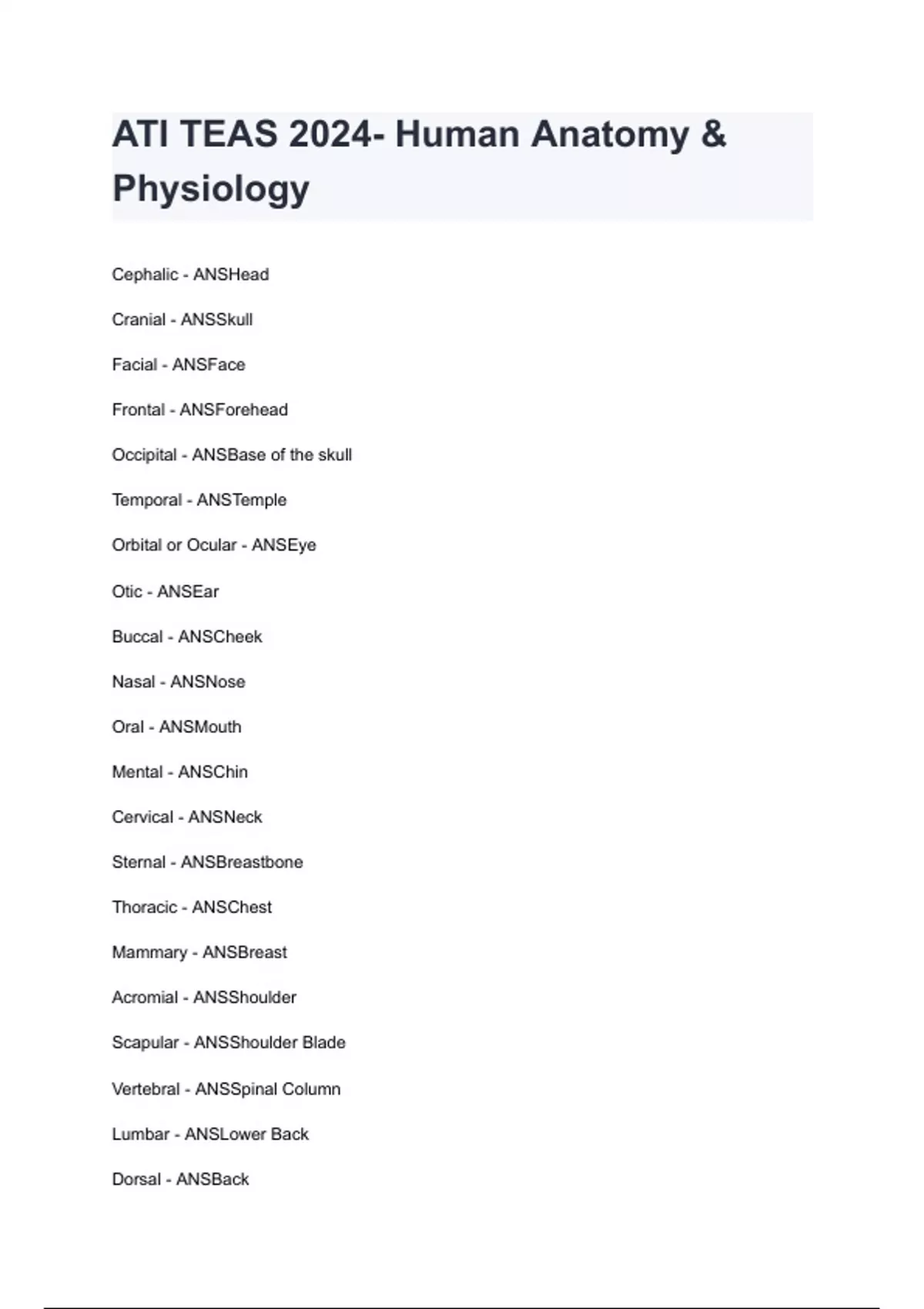 ATI TEAS 2024- Human Anatomy & Physiology