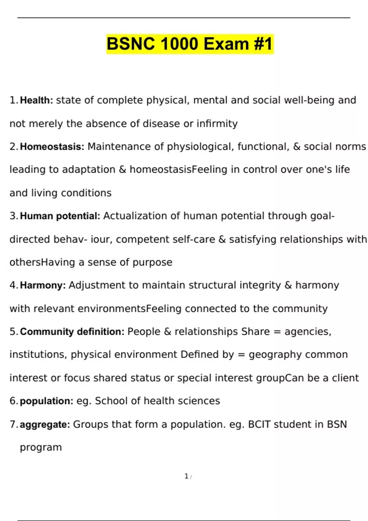 BSNC 1000 Exam 1 Questions and Answers (2024 / 2025) (Verified Answers)