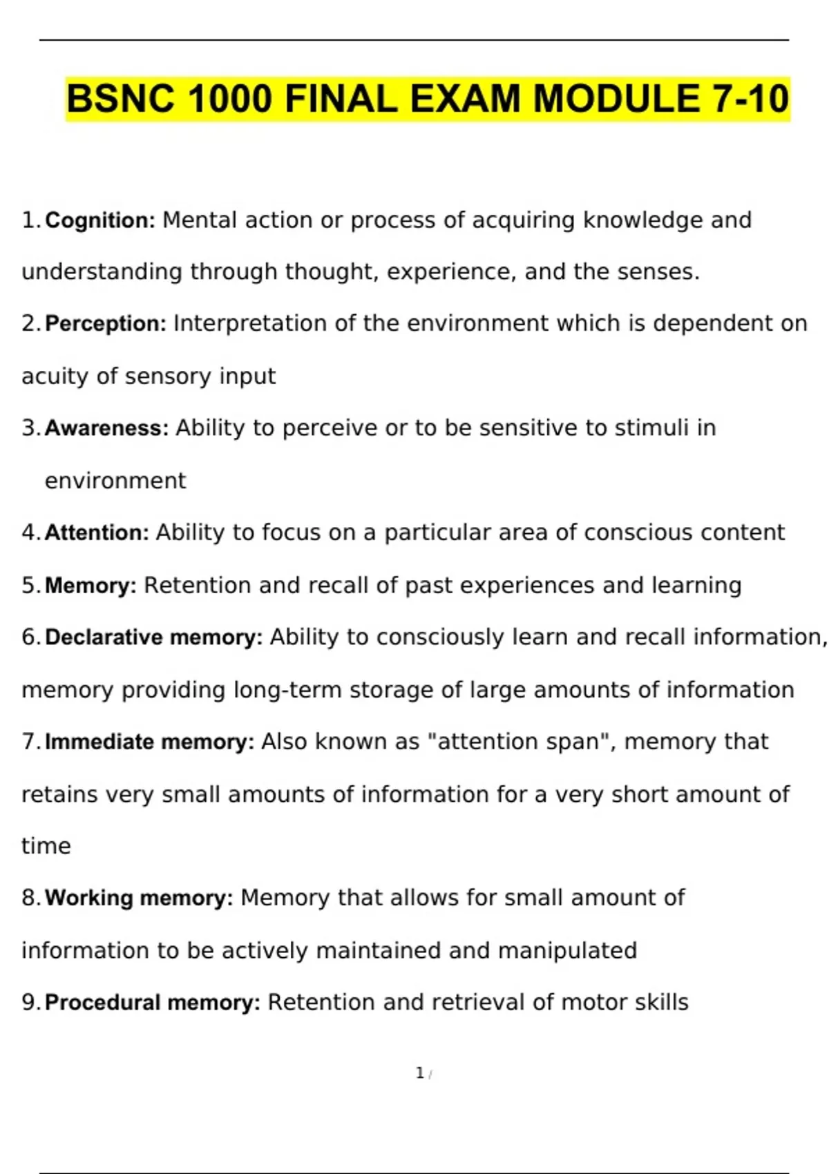 BSNC 1000 FINAL EXAM MODULE 7-10 Questions and Answers (2024 / 2025) (Verified Answers)