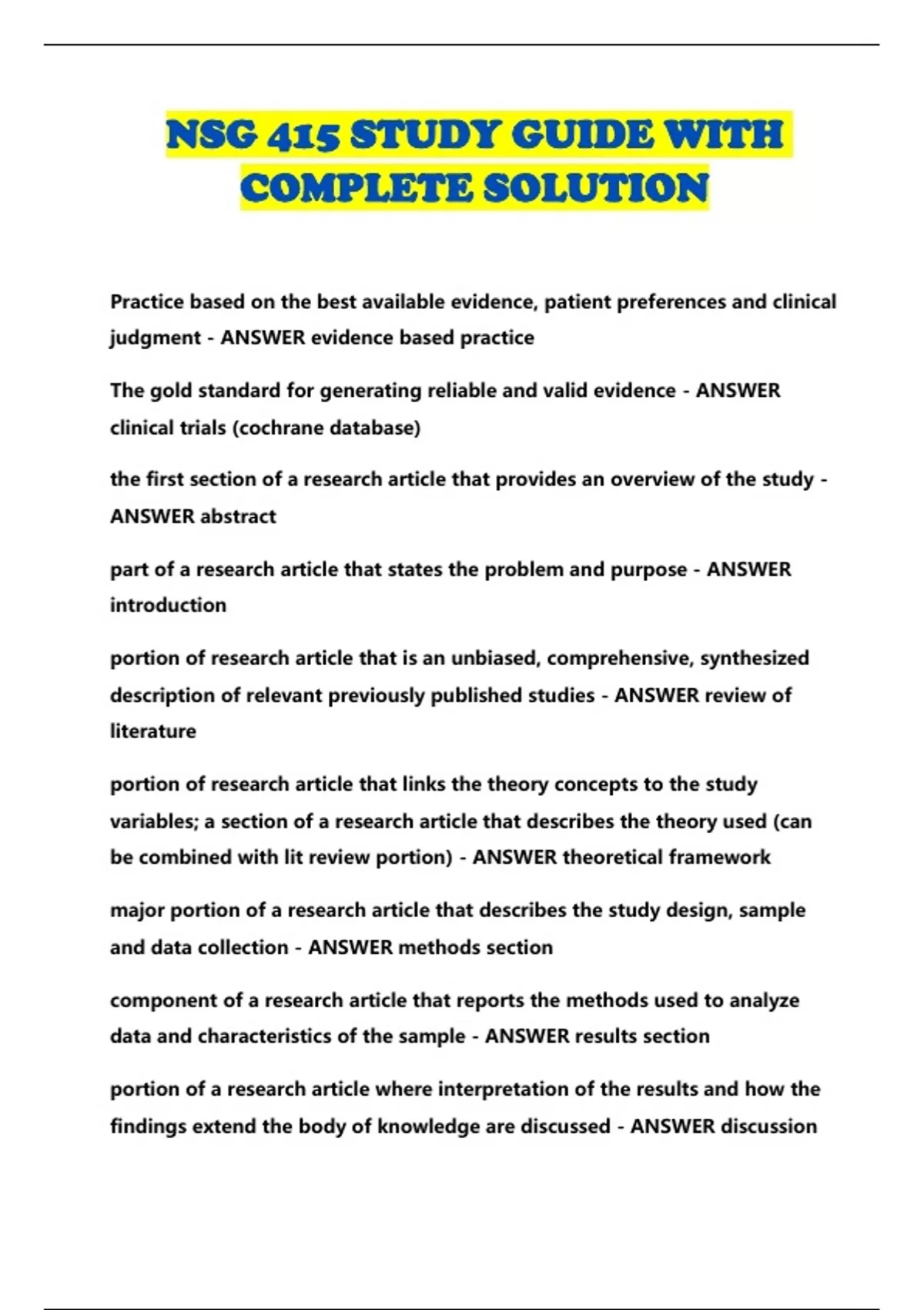 NSG 415 STUDY GUIDE WITH COMPLETE SOLUTION