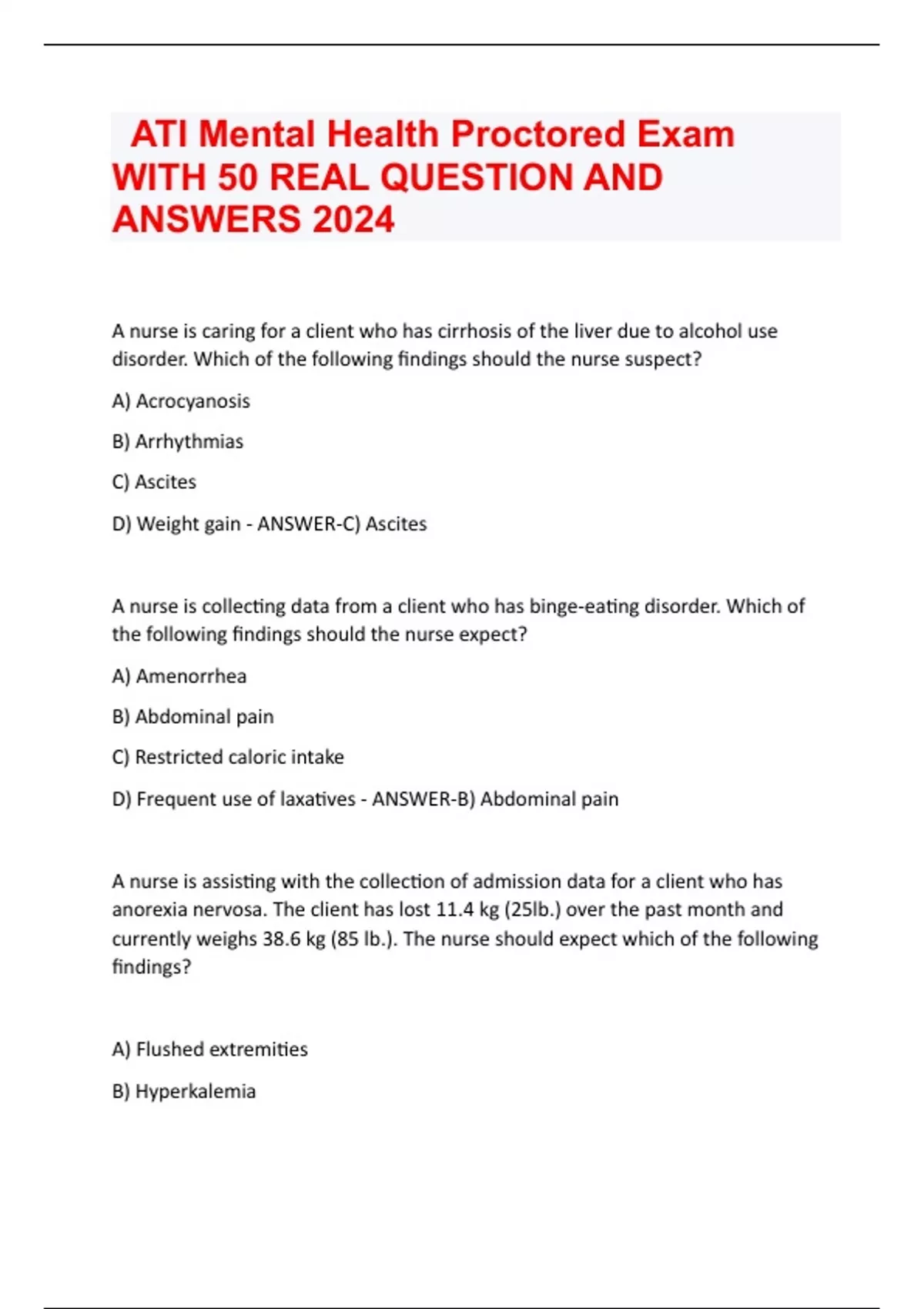 ATI Mental Health Proctored Exam WITH 50 REAL QUESTION AND ANSWERS 2024,ATI Mental Health Proctored Exam WITH 50 REAL QUESTION AND ANSWERS 2024,ATI Mental Health Proctored Exam WITH 50 REAL QUESTION AND ANSWERS 2024,ATI Mental Health Proctored Exam WITH 50 REAL QUESTION AND ANSWERS 2024
