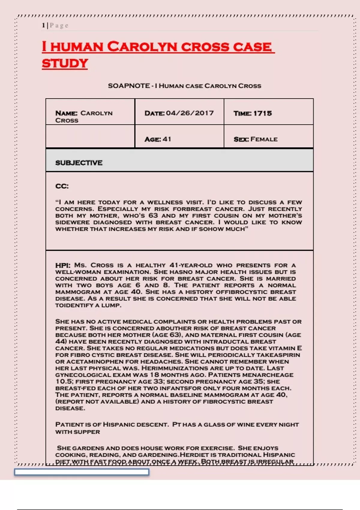 - I human Carolyn cross case study