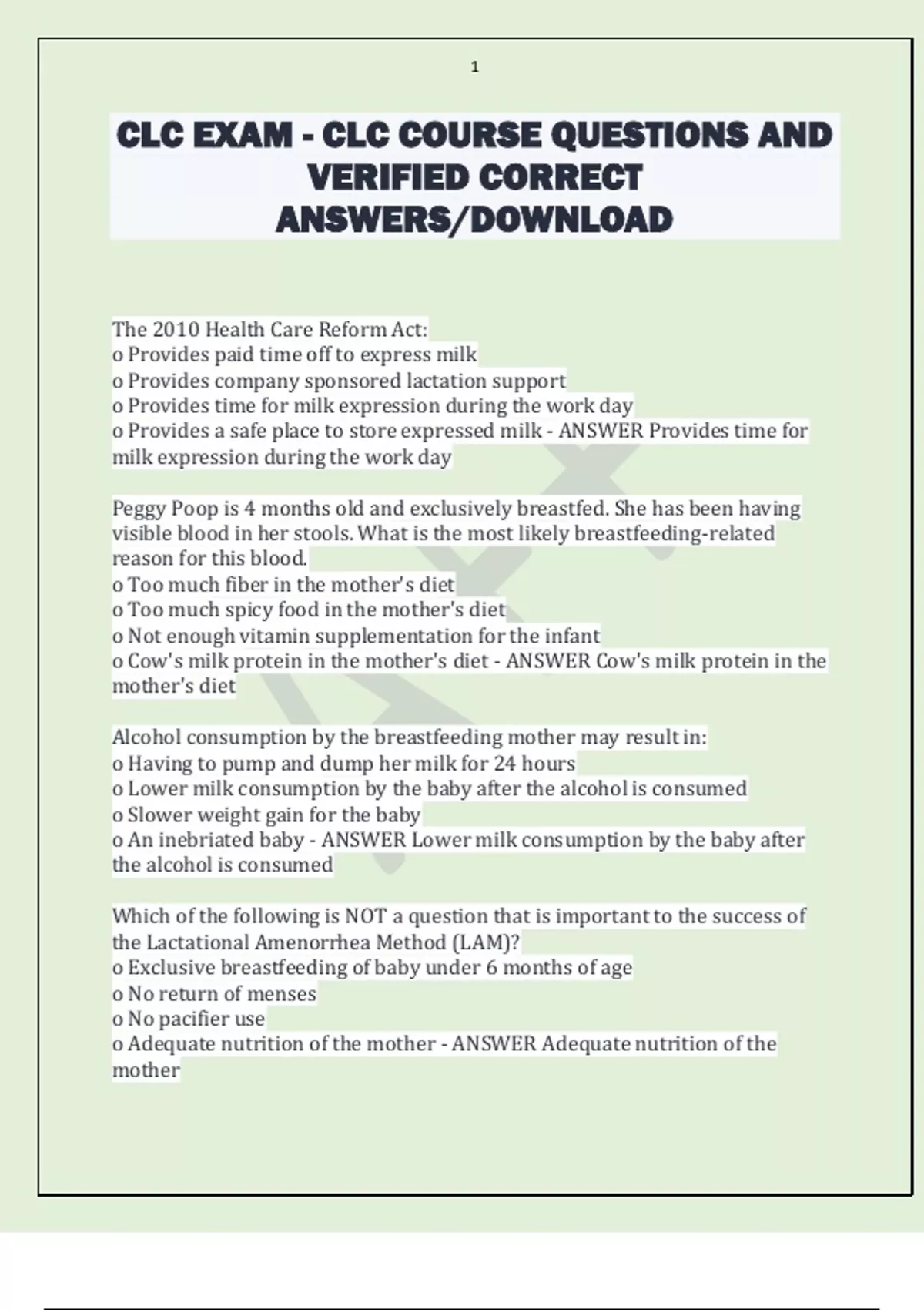 CLC EXAM - CLC COURSE QUESTIONS AND VERIFIED CORRECT ANSWERS/DOWNLOAD