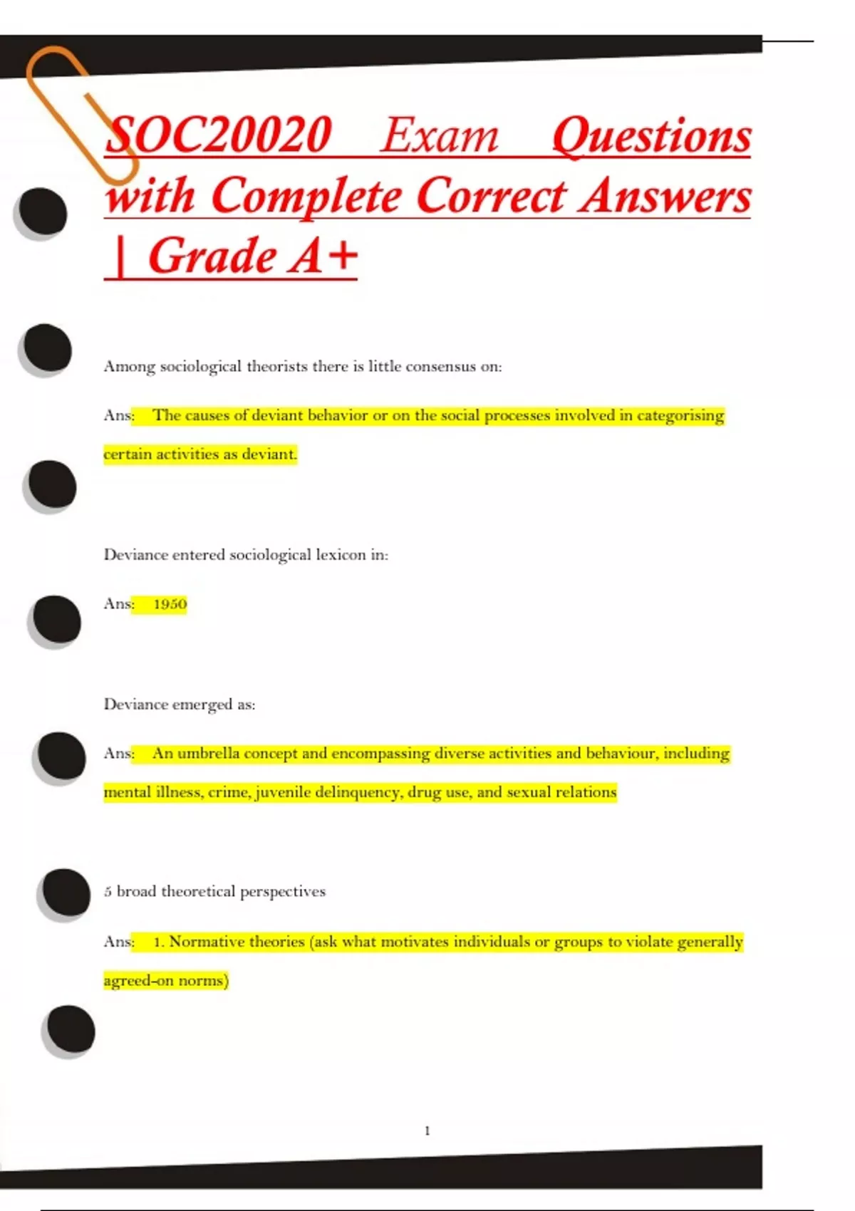 SOC20020 Exam Questions with Complete Correct Answers | Grade A+