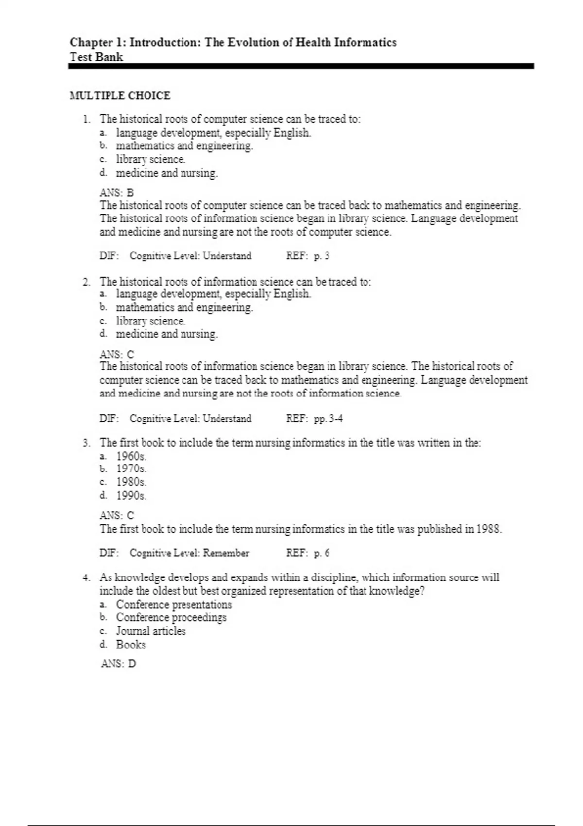 test bank for health informatics an interprofessio