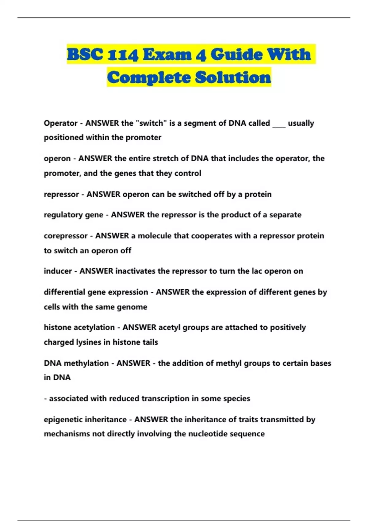 bsc 114 exam 4 guide with complete solution