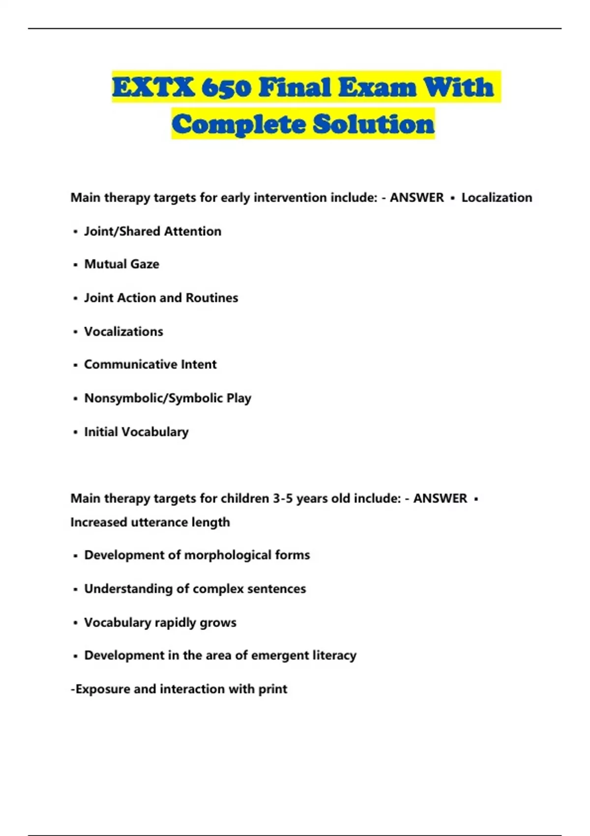 Main therapy targets for children 3-5 years old include: - ANSWER ▪