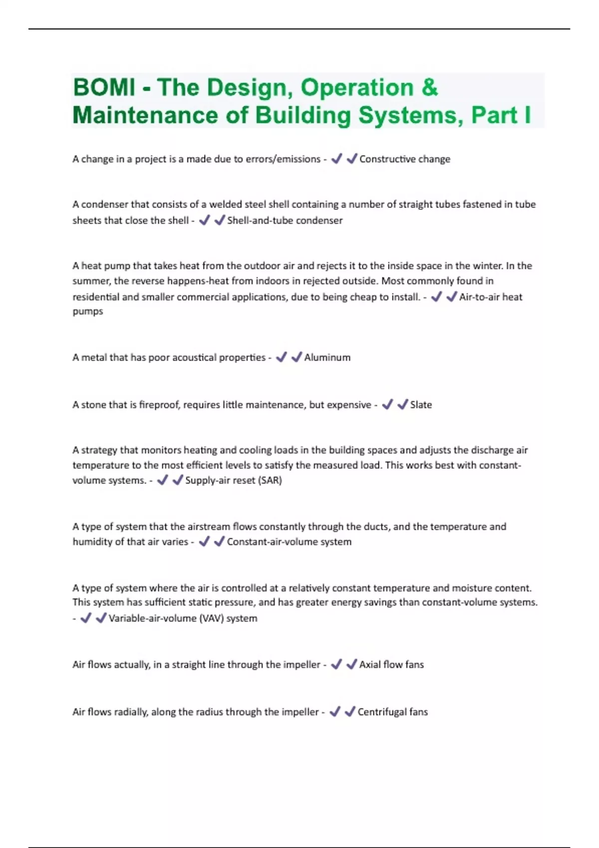 BOMI - The Design, Operation & Maintenance of Building Systems, Part I Questions And Answers Graded A+