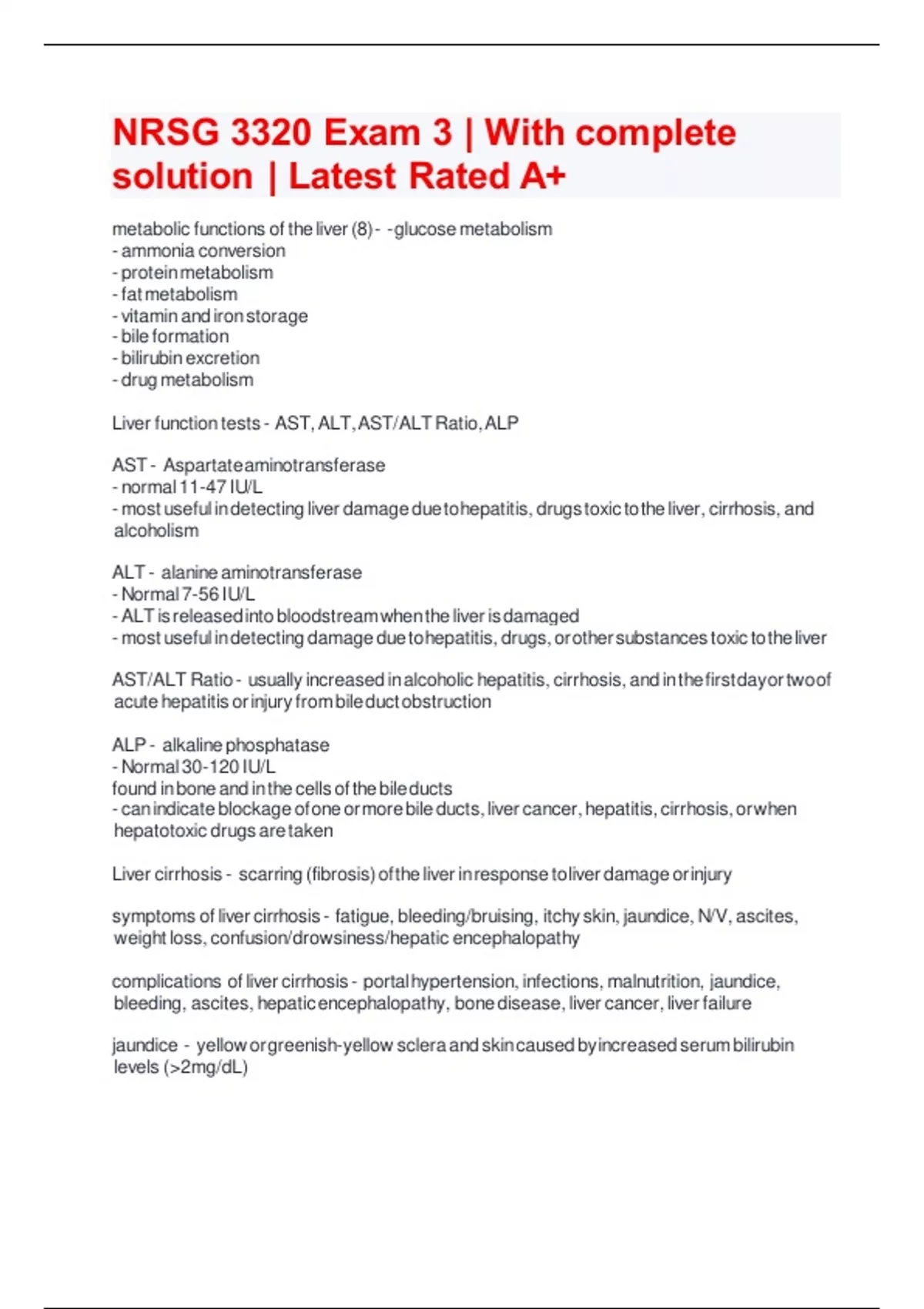 NRSG 3320 Exam 3 | With complete solution | Latest Rated A+