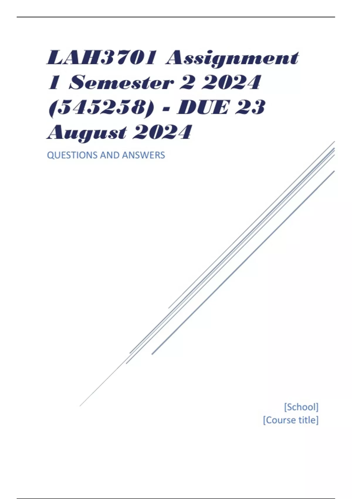 LAH3701 Assignment 1 Semester 2 2024 (545258) - DUE 23 August 2024 QUESTIONS AND ANSWERS