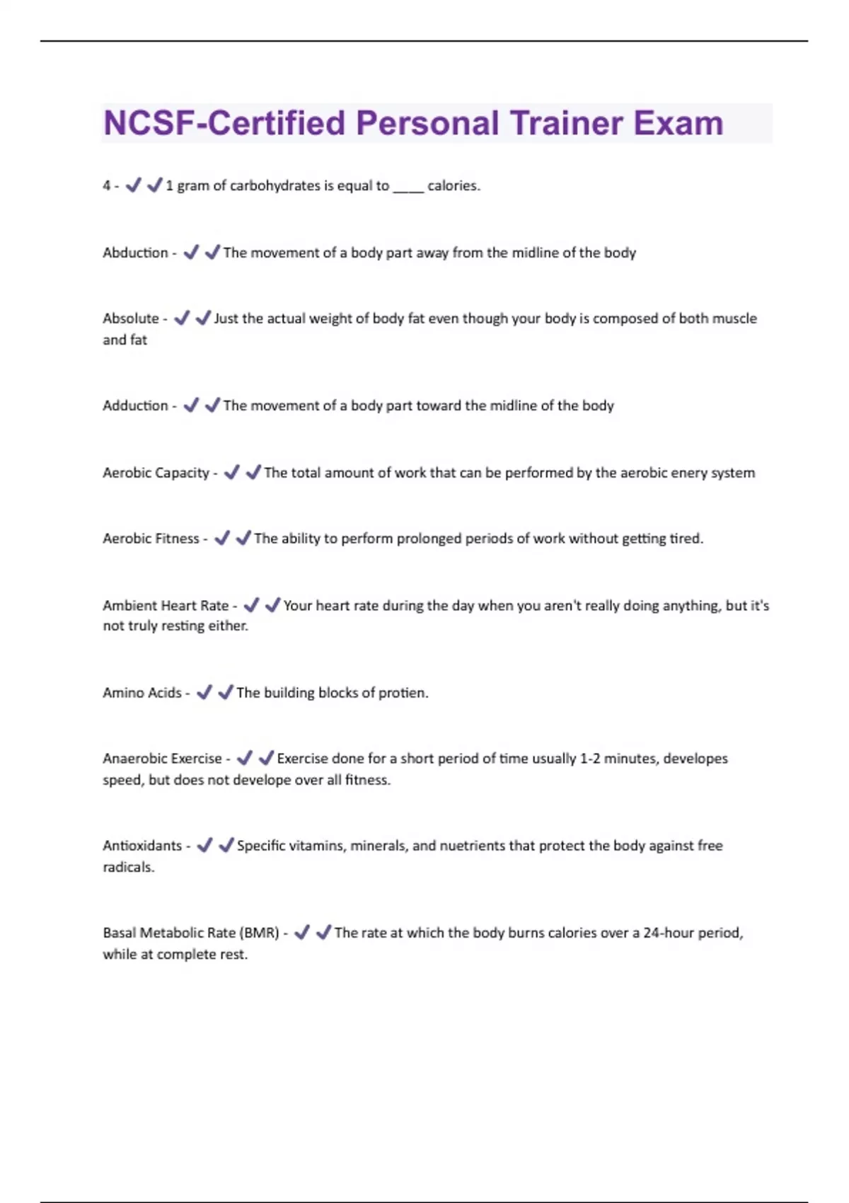 NCSF-Certified Personal Trainer Exam All Possible Questions and Answers with complete solution