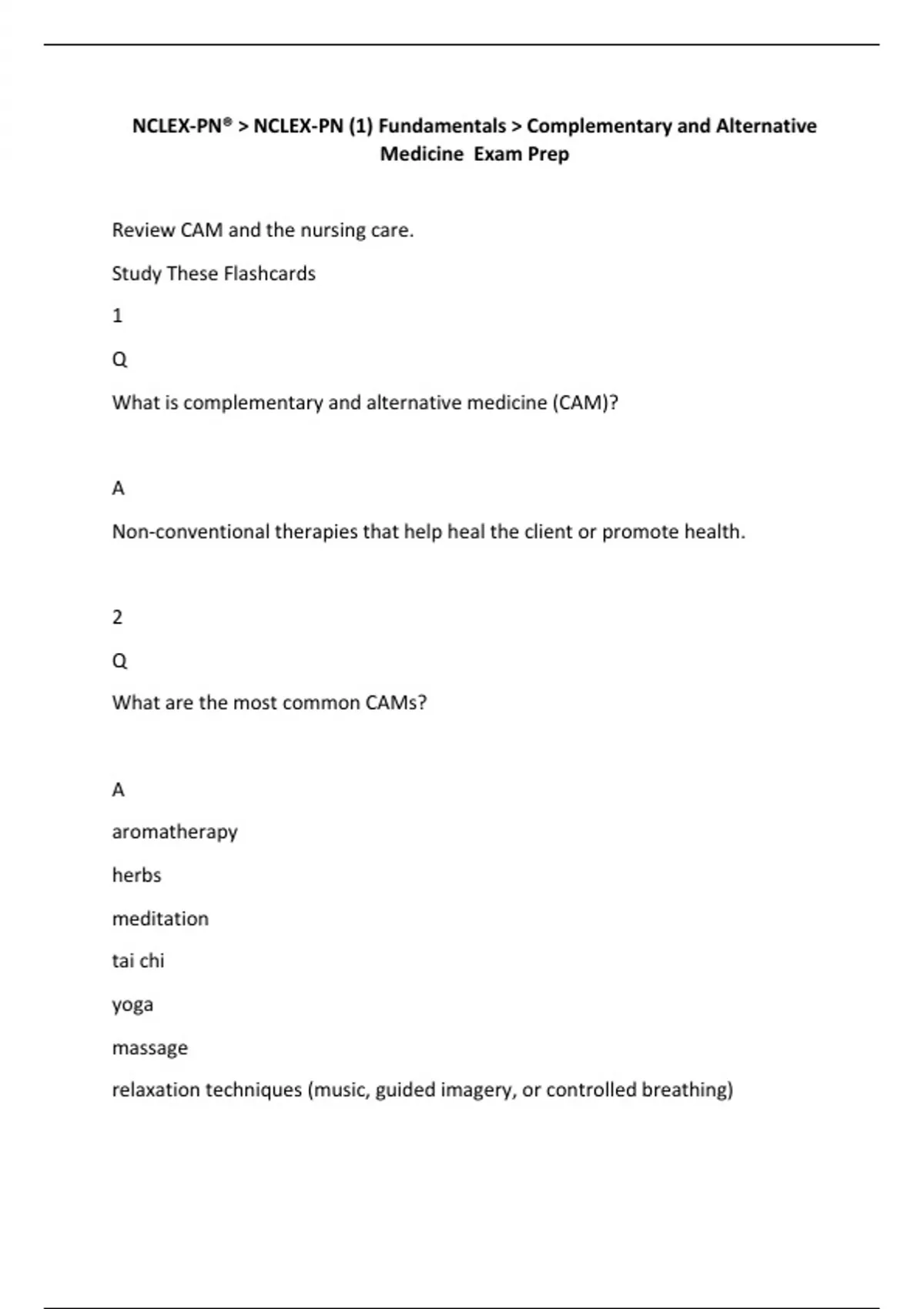 NCLEX-PN® NCLEX-PN Fundamentals Complementary and Alternative Medicine Exam Prep.