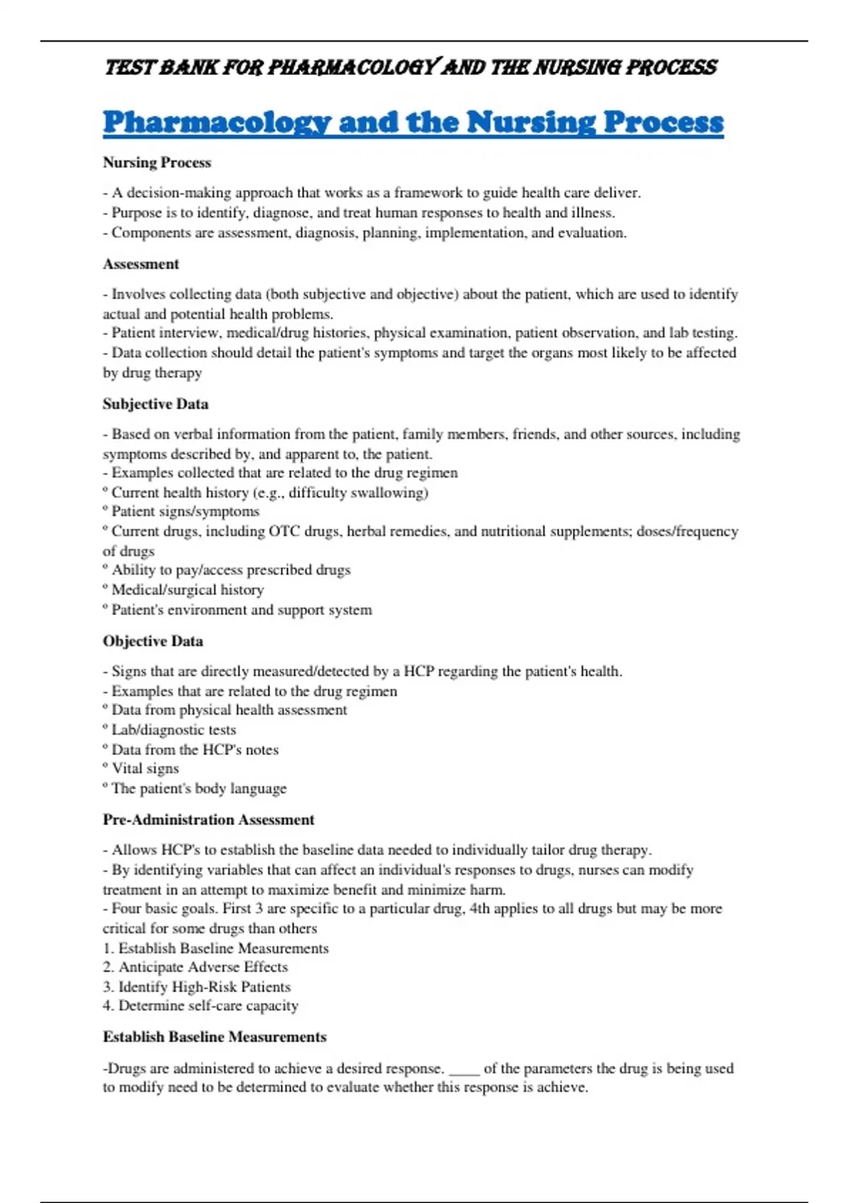 TEST BANK FOR PHARMACOLOGY AND THE NURSING PROCESS 2024 LATEST UPDATE WITH 100% VERIFIED ANSWERS