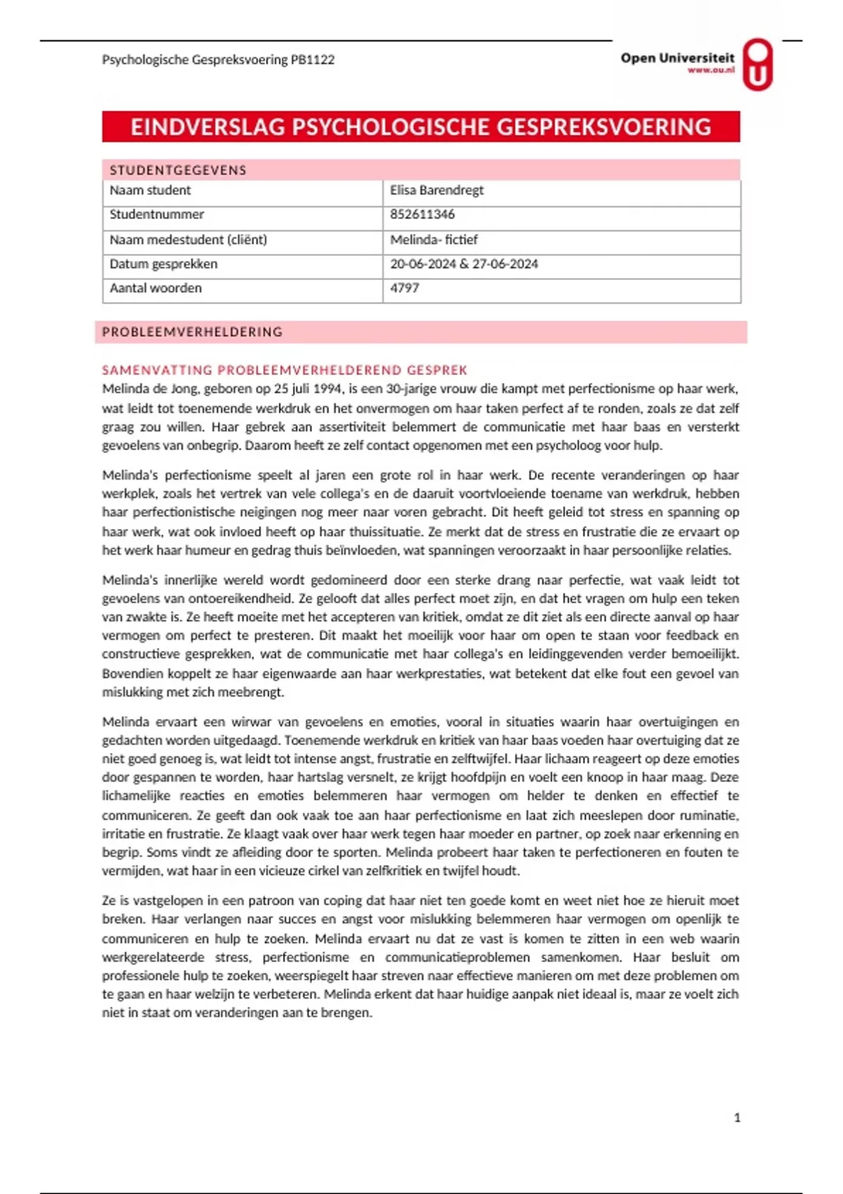 Eindverslag psychologische gespreksvoering. Behaald met een 8,3 op de Open Universiteit. Dit verslag is conform het beoordelingsformulier geschreven en in juli 2024 ingeleverd.
