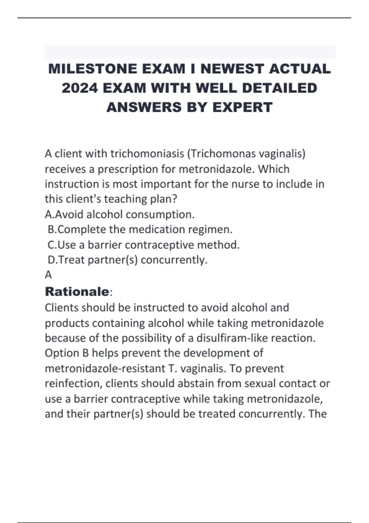 MILESTONE EXAM I NEWEST ACTUAL 2024 EXAM WITH WELL DETAILED ANSWERS BY EXPERT