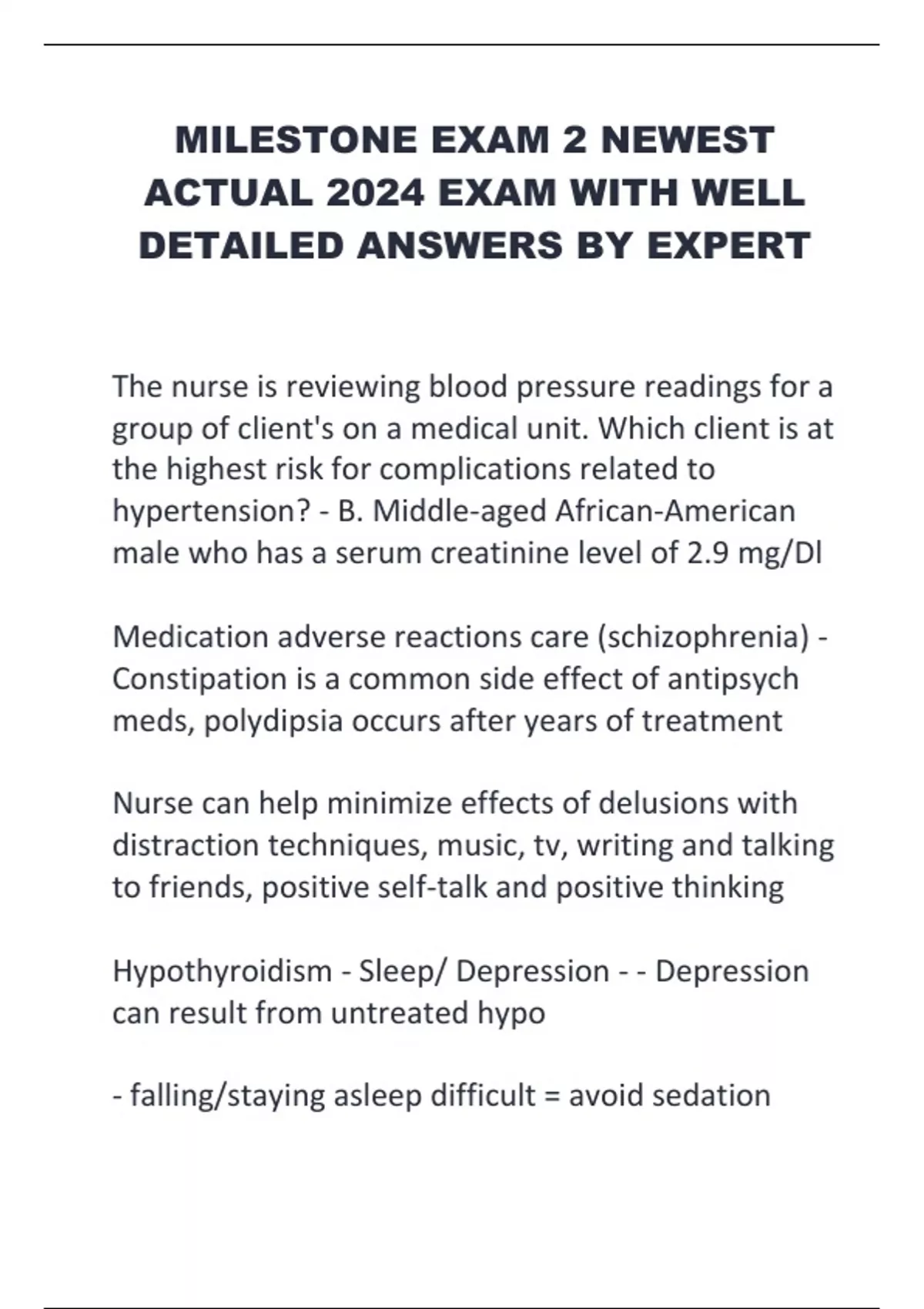 MILESTONE EXAM 2 NEWEST ACTUAL 2024 EXAM WITH WELL DETAILED ANSWERS BY EXPERT