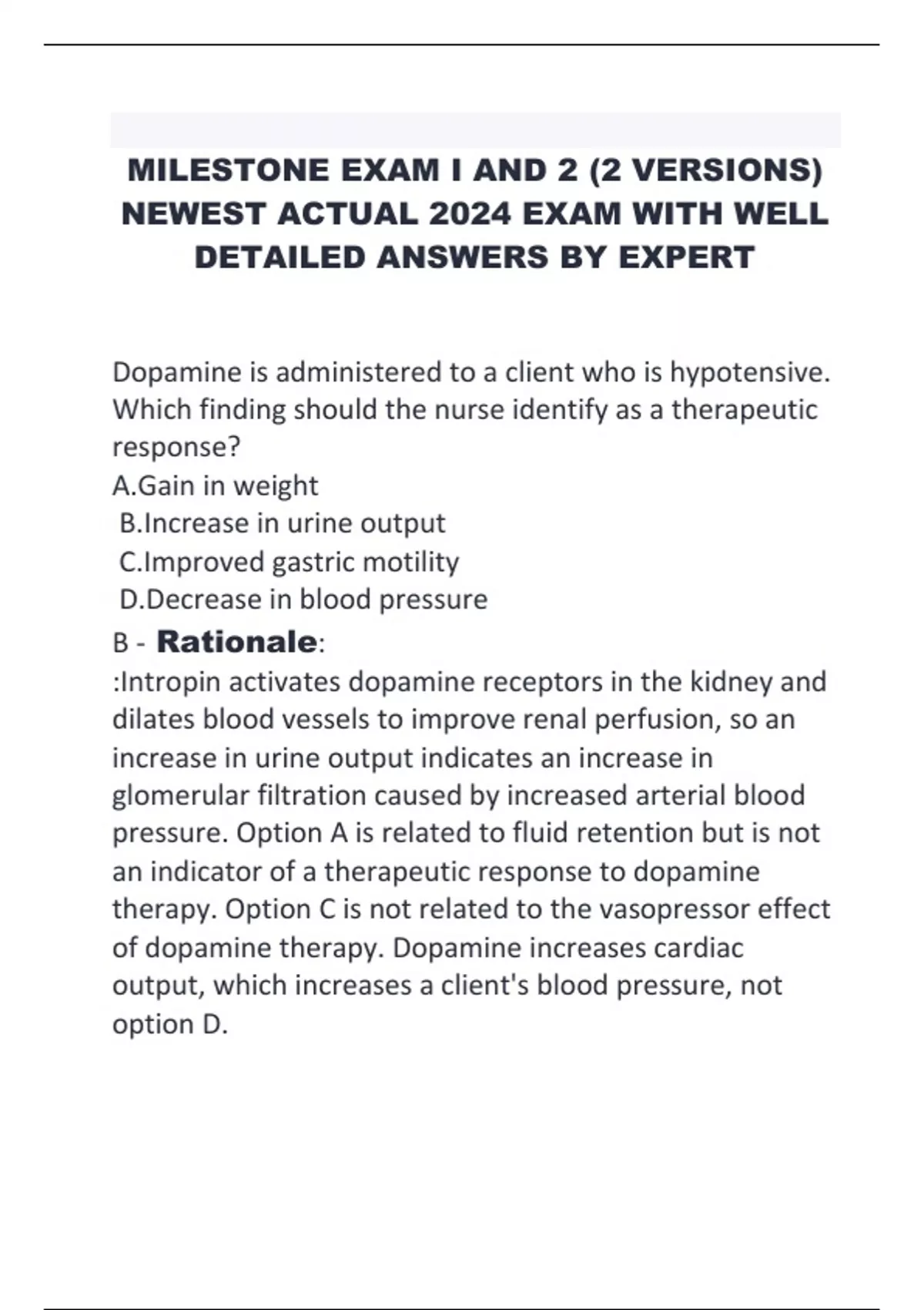 MILESTONE EXAM I AND 2 (2 VERSIONS) NEWEST ACTUAL 2024 EXAM WITH WELL DETAILED ANSWERS BY EXPERT