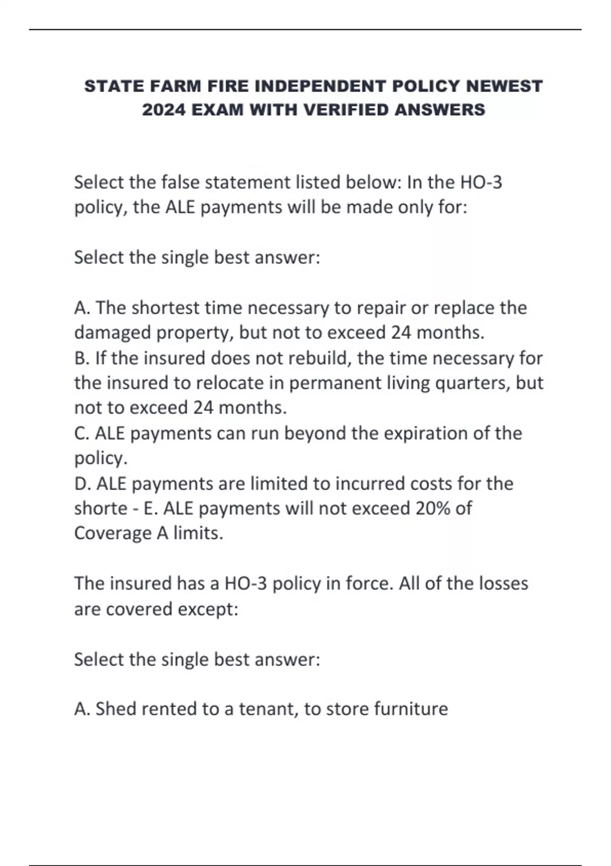 STATE FARM FIRE INDEPENDENT POLICY NEWEST 2024 EXAM WITH VERIFIED ANSWERS