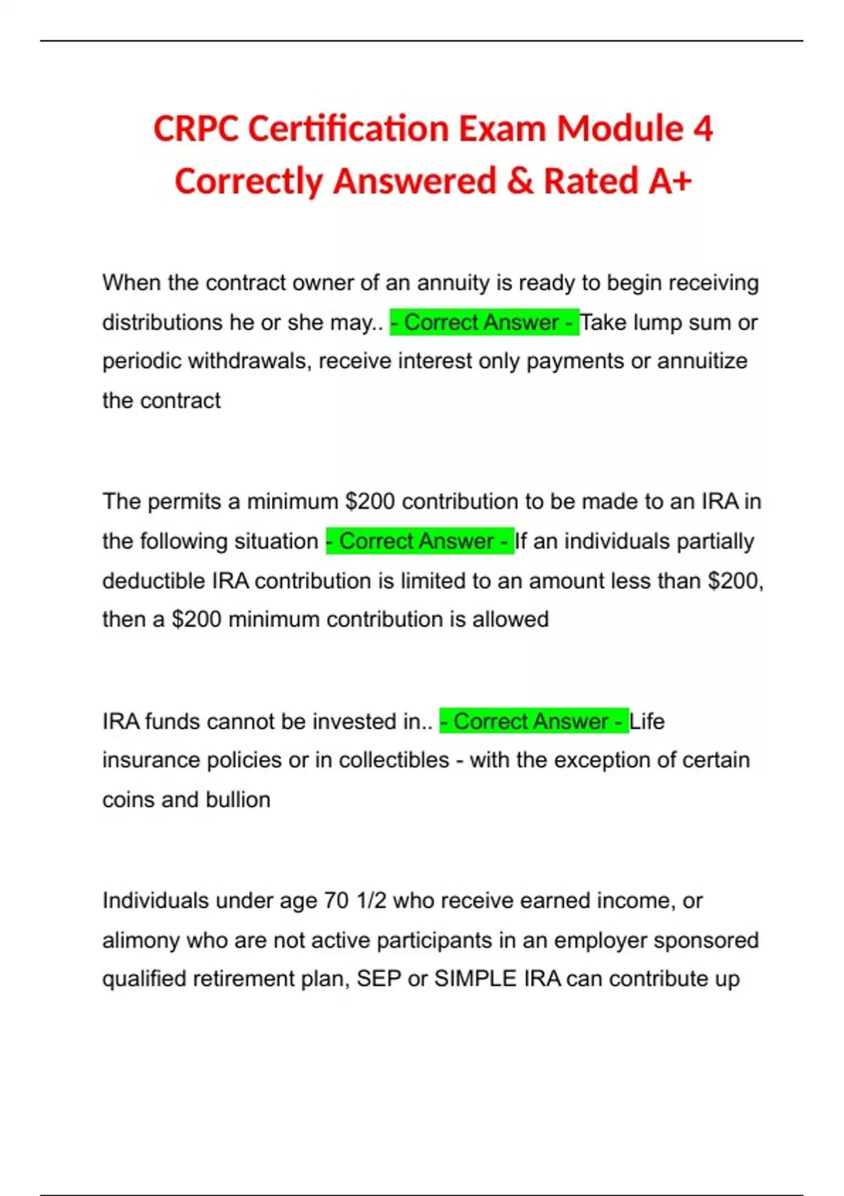CRPC Certification Exam Module 4 Correctly Answered & Rated A+ CRPC Certification Exam Module 4 Correctly Answered & Rated A+ CRPC Certification Exam Module 4 Correctly Answered & Rated A+
