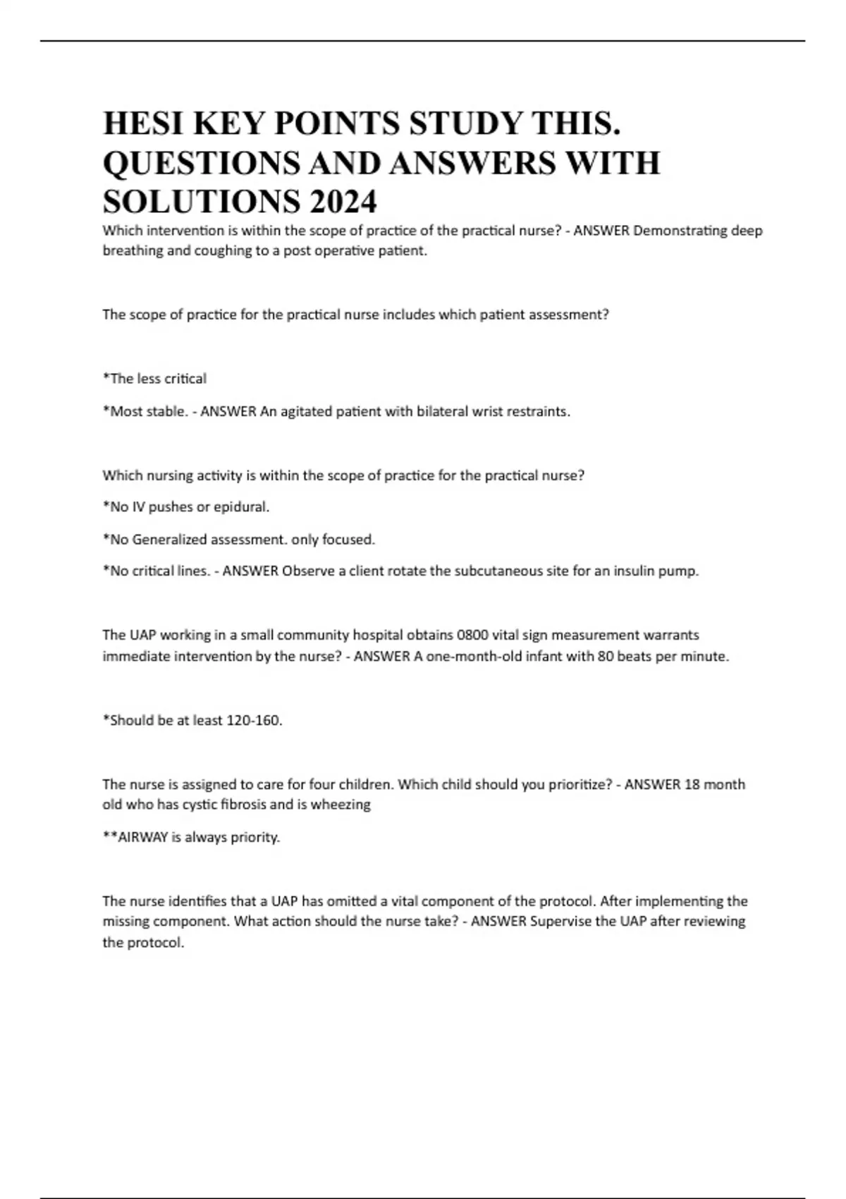 HESI KEY POINTS STUDY THIS. QUESTIONS AND ANSWERS WITH SOLUTIONS 2024