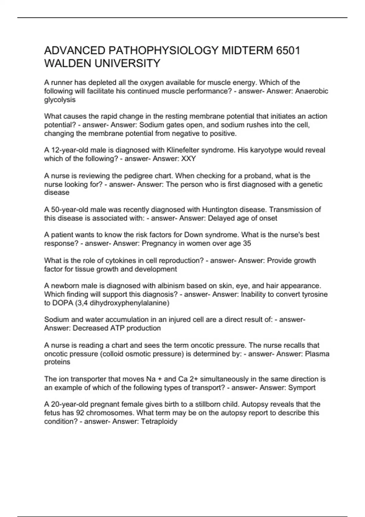 ADVANCED PATHOPHYSIOLOGY MIDTERM 6501 WALDEN UNIVERSITY