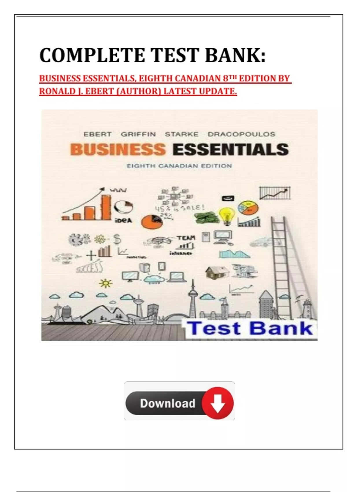COMPLETE TEST BANK: BUSINESS ESSENTIALS, EIGHTH CANADIAN 8TH EDITION BY RONALD J. EBERT (AUTHOR) LATEST UPDATE.