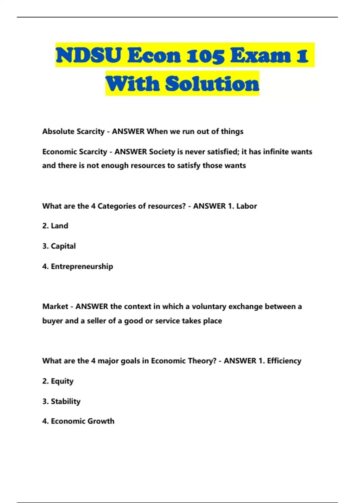 NDSU ECON 105 BUNDLED EXAMS WITH SOLUTION