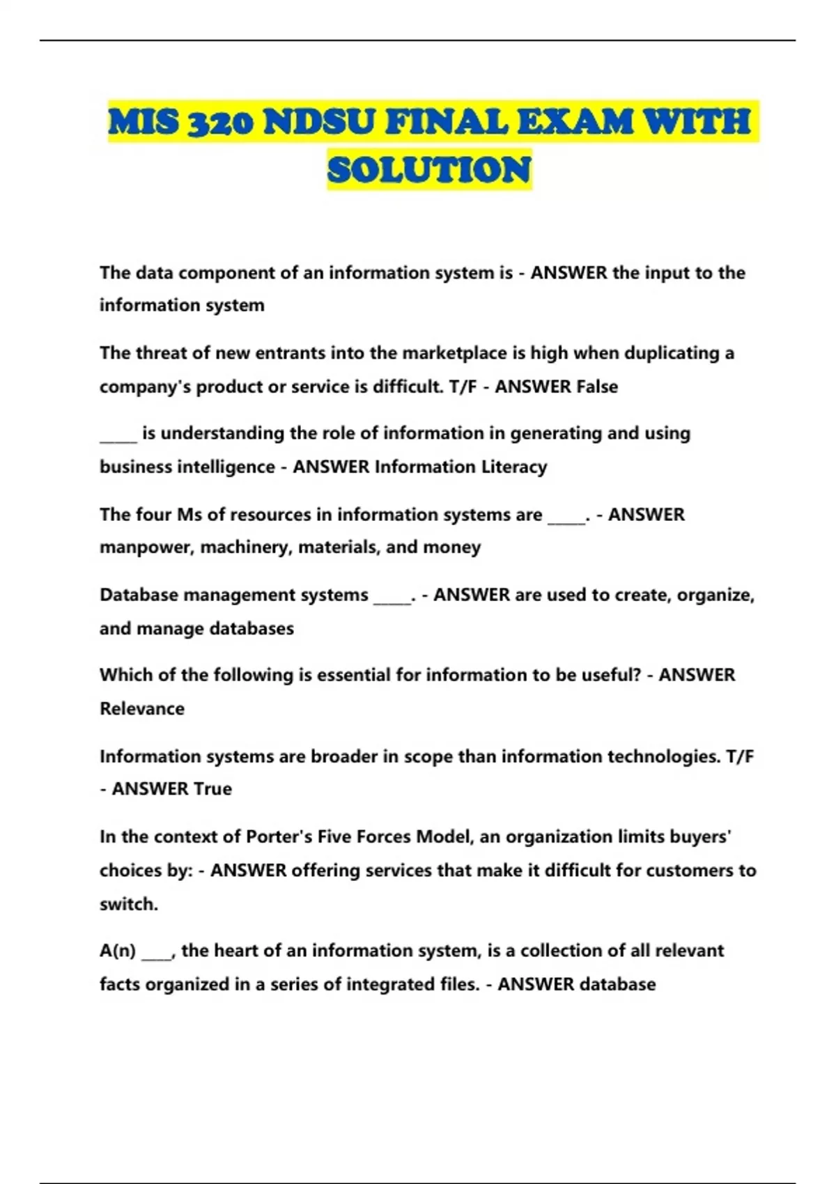 MIS 320 NDSU FINAL EXAM WITH SOLUTION
