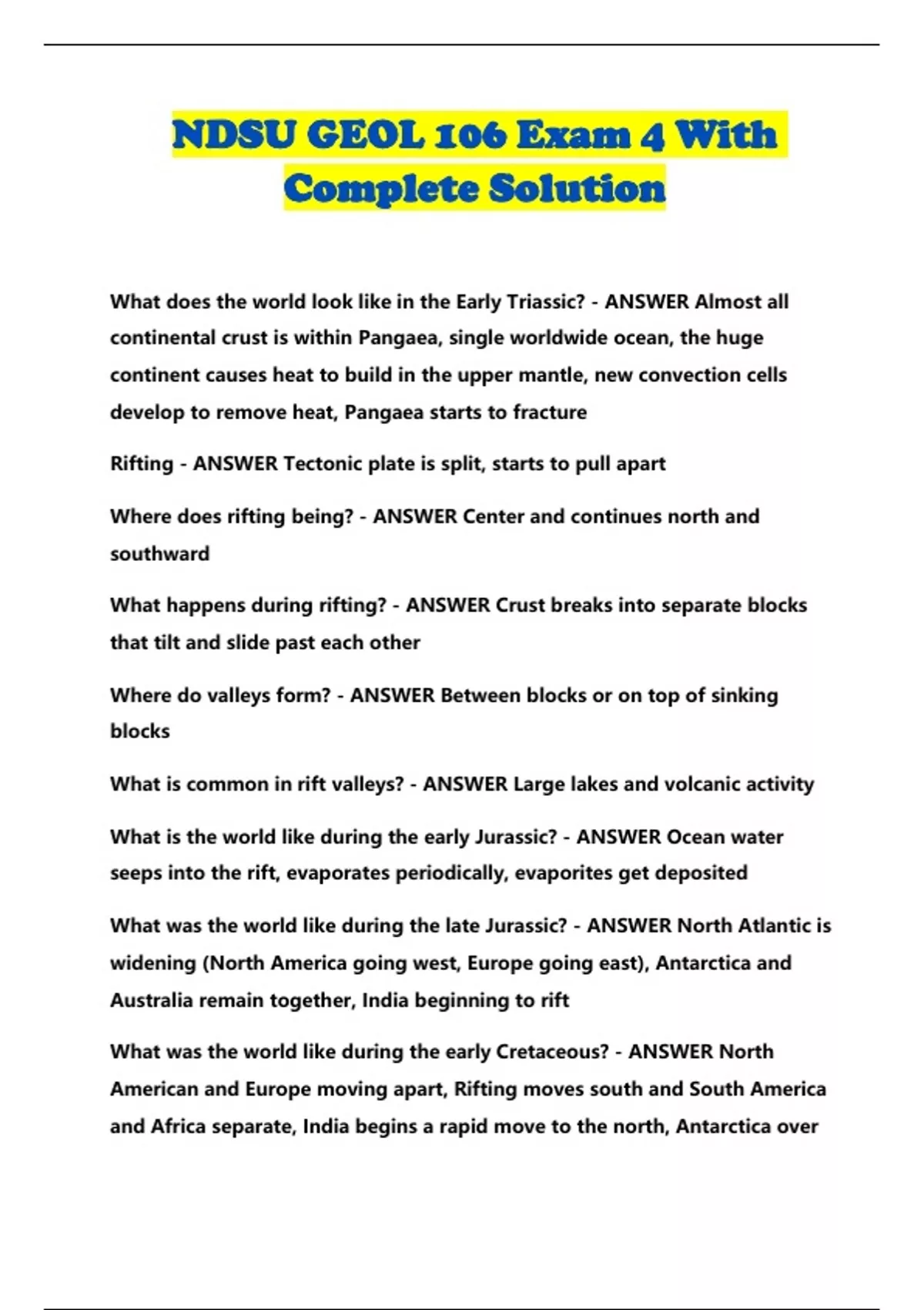 NDSU GEOL 106 BUNDLED EXAMS WITH SOLUTION