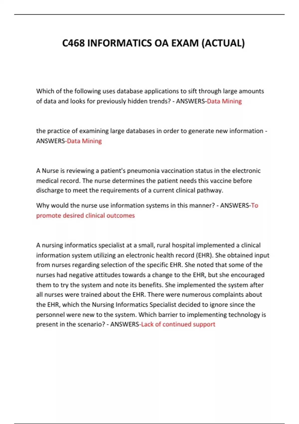 C468 INFORMATICS OA EXAM 2024 (ACTUAL)