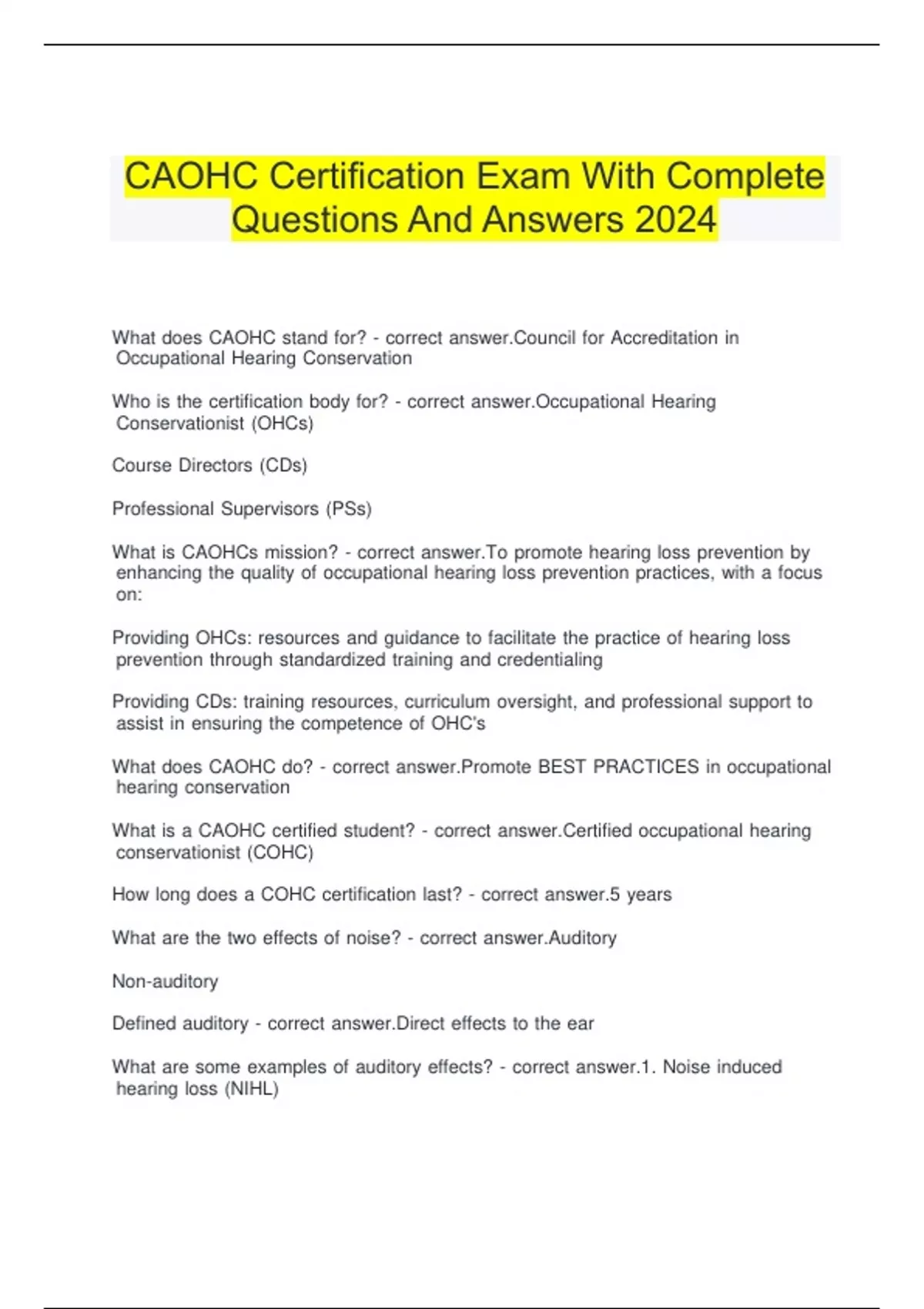 CAOHC Certification Exam With Complete Questions And Answers 2024