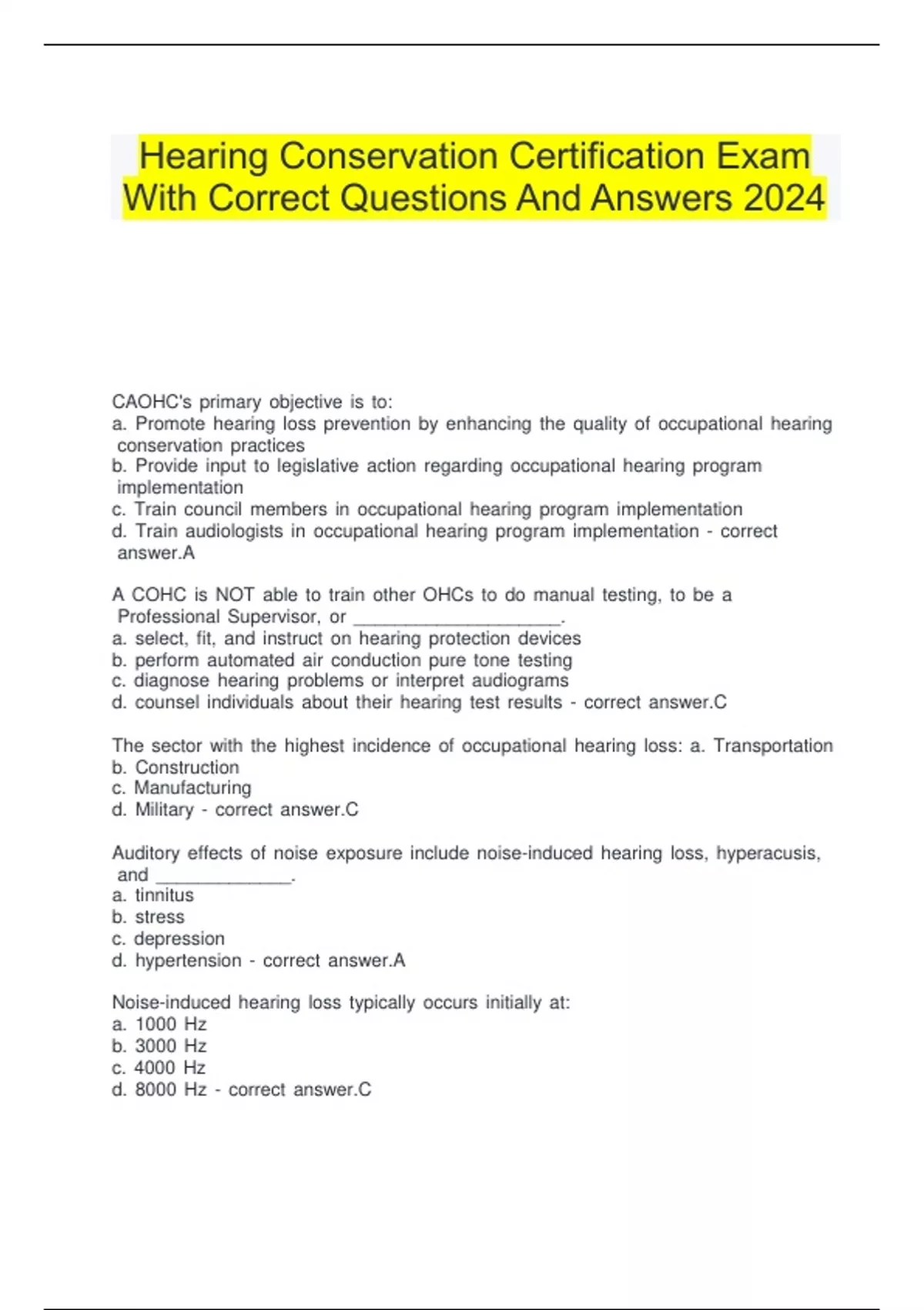 Hearing Conservation Certification Exam With Correct Questions And Answers 2024