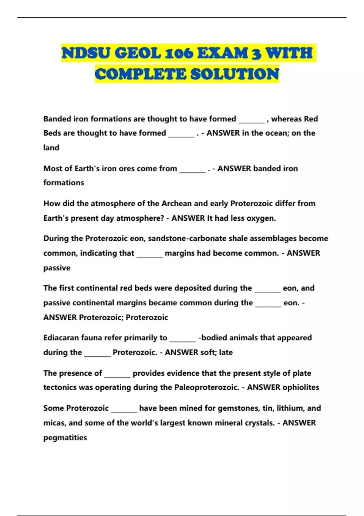 NDSU GEOL 106 BUNDLED EXAMS WITH SOLUTION