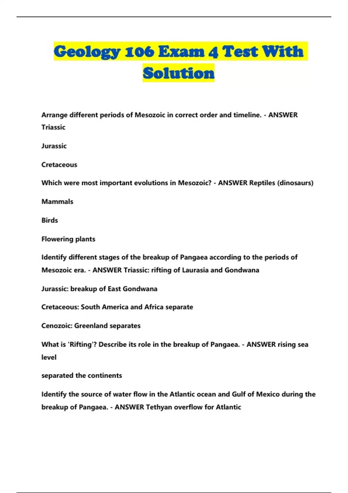 Geology 106 Exam 4 Test With Solution...