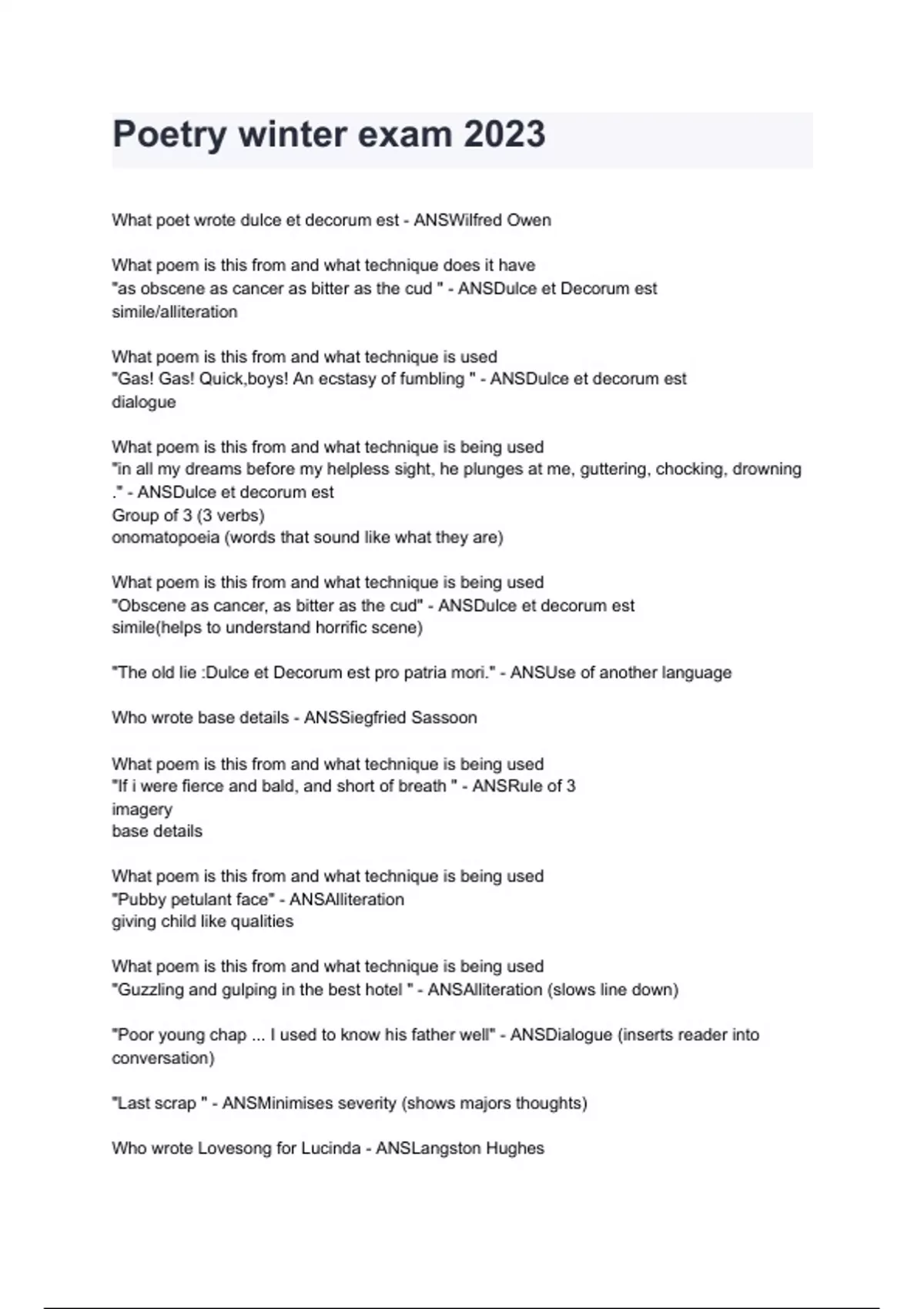 Poetry winter exam 2023