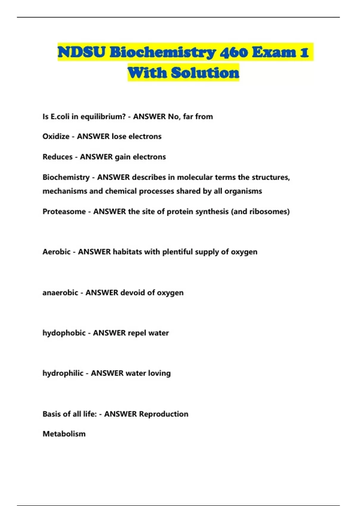 ndsu biochemistry 460 exam 1 with solution