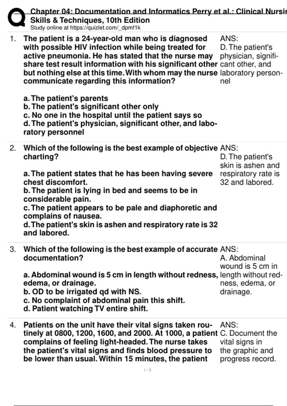 CHAPTER 04 DOCUMENTATION AND INFORMATICS PERRY CLINICAL NURSING SKILLS & TECHNIQUES 10TH EDITION 2024