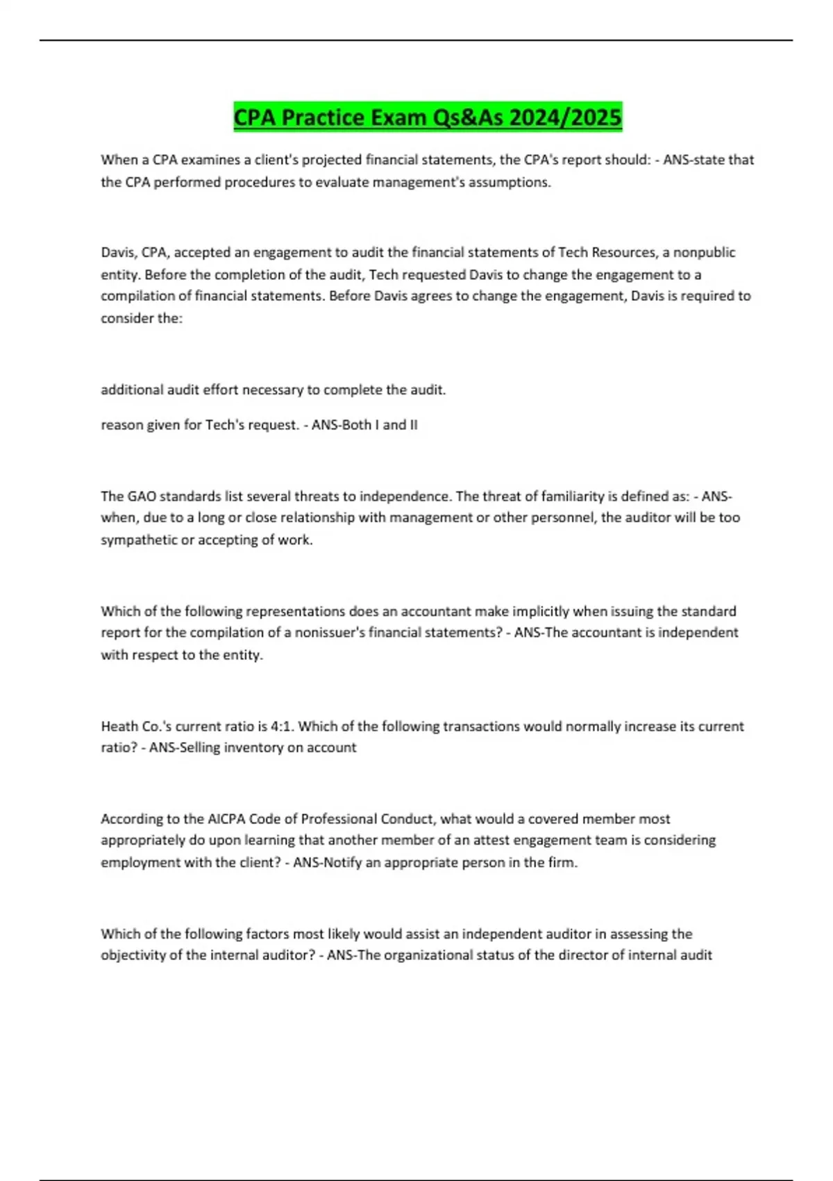 CPA Practice Exam Qs&As 2024/2025