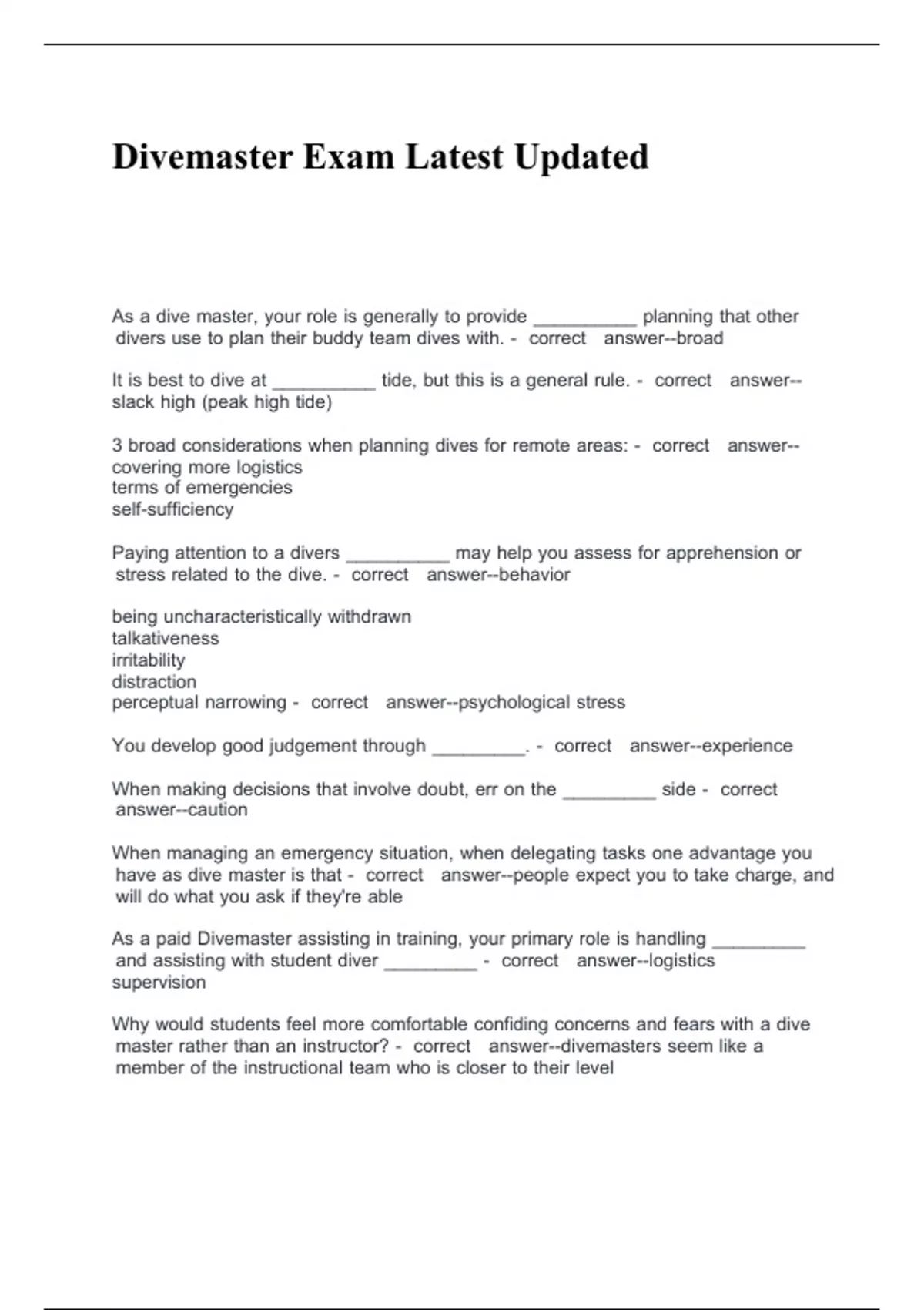 Divemaster Exam Latest Updated.