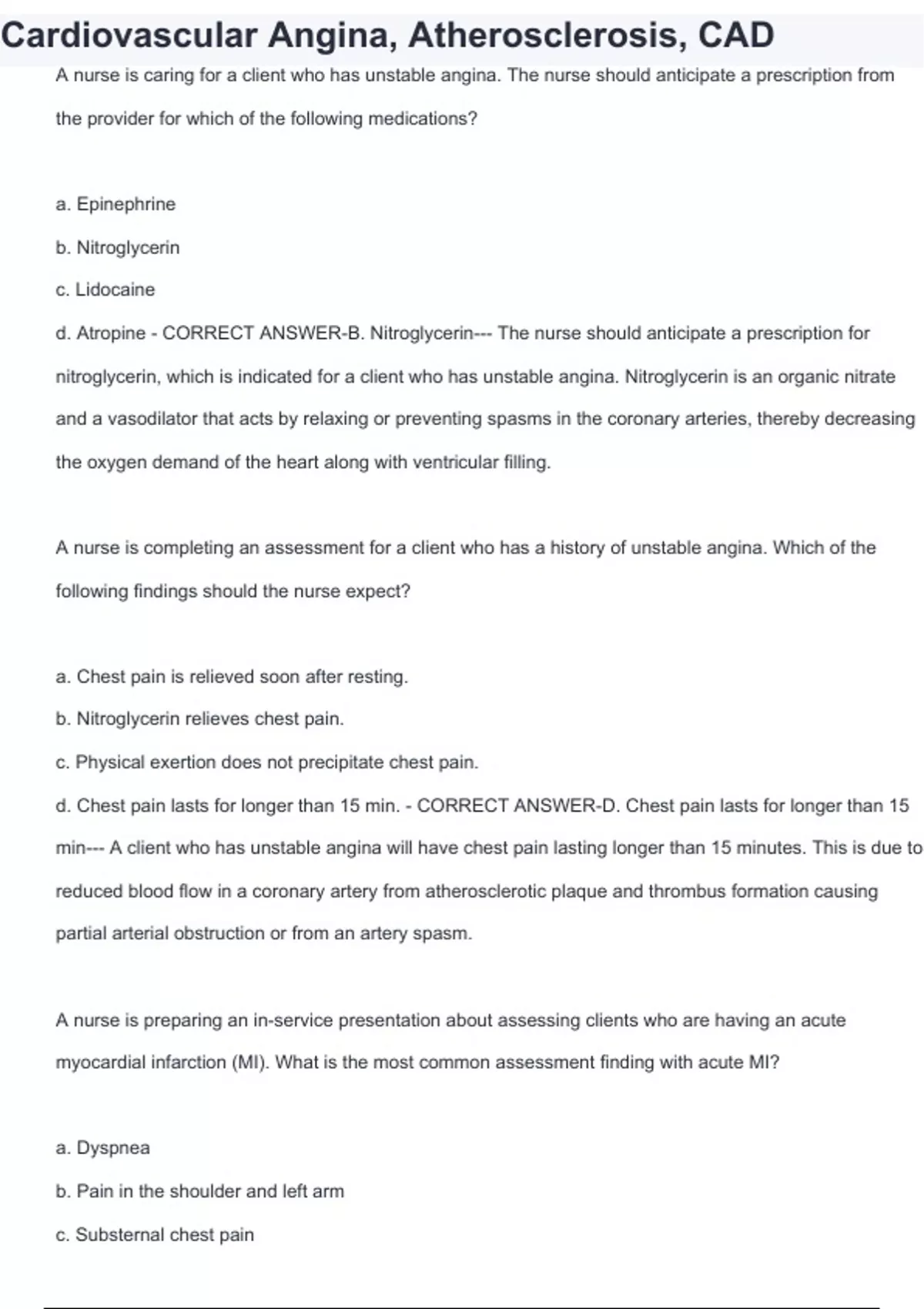 Cardiovascular Angina, Atherosclerosis, CAD - 2024 with complete solutions/ latest update 2024 pdf download